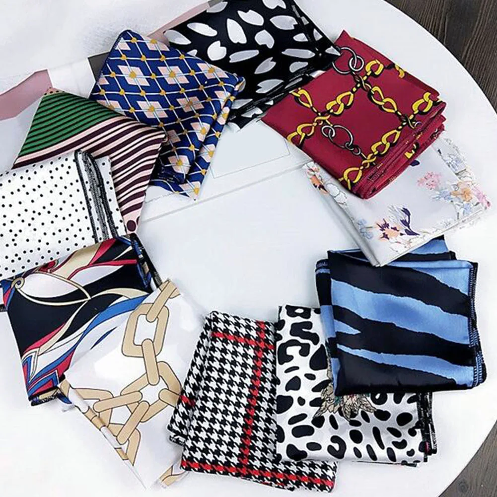 Маленький квадратный атласный шарф, платок на голову, бандана, повязка на голову, платок