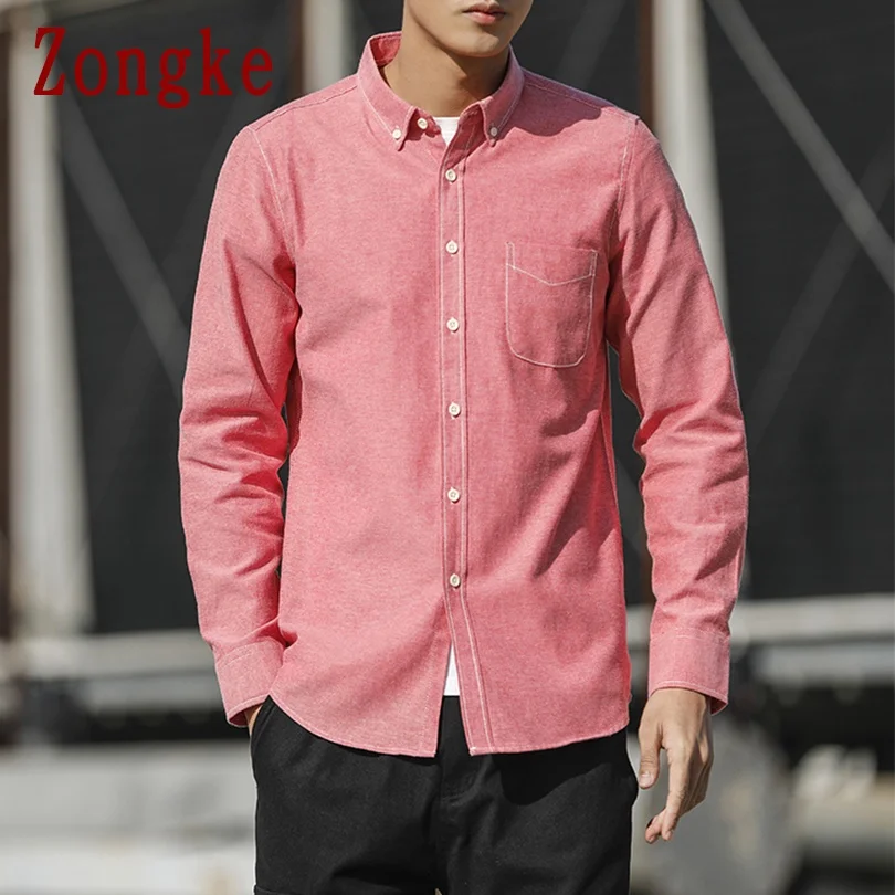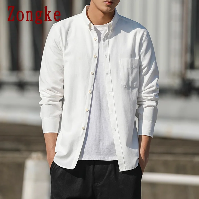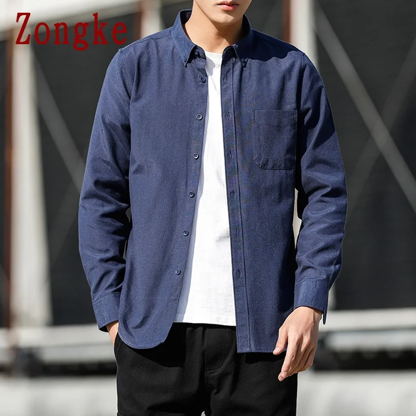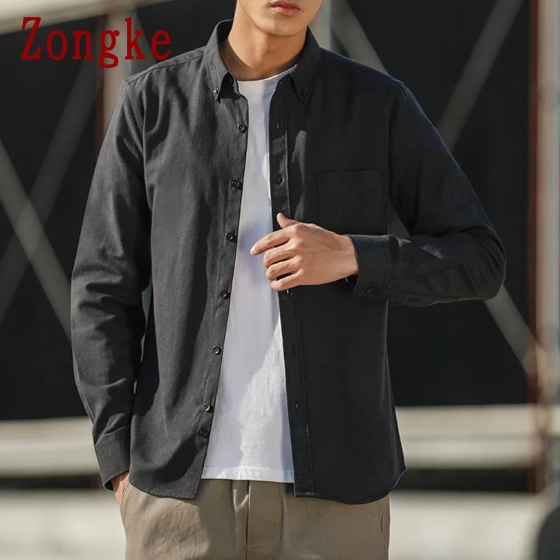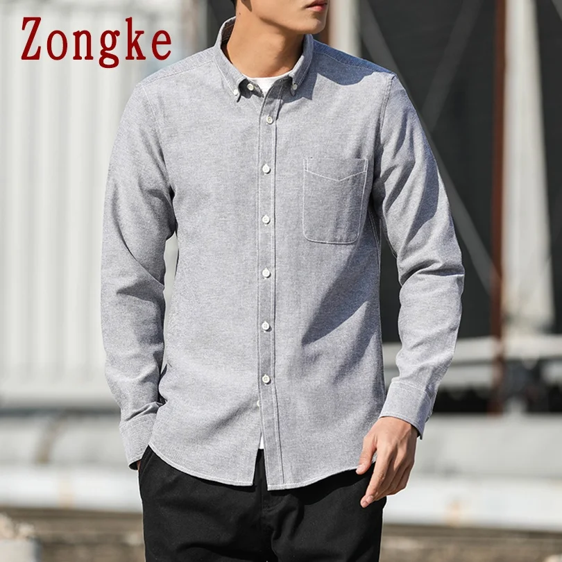 Новинка 2022, Весенняя повседневная мужская рубашка Zongke с длинным рукавом, облегающая однотонная мужская рубашка, Мужская одежда, модные брендовые Топы