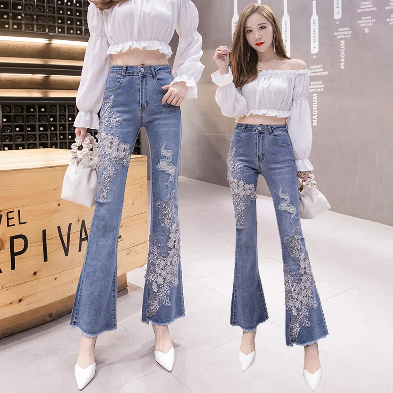 Новинка 2022, весенние джинсы с высокой талией, расклешенные джинсы, женские джинсы с расклешенным низом, женские обтягивающие джинсы в стиле ретро, женские джинсы до щиколотки, брюки