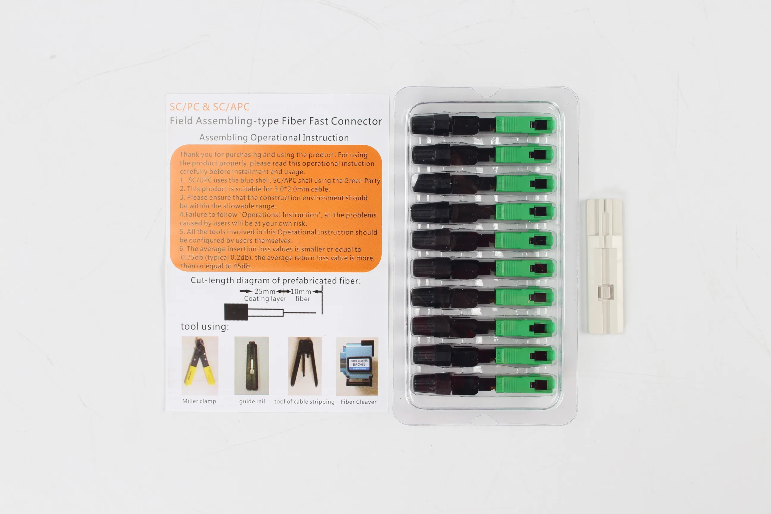 Быстрый соединитель (также именуемый «не-польский соединитель», «предварительно польский соединитель» или «быстрый соединитель»)-простое в установке устройство. Инструмент или джиг не требуются. Он универсален для 250um /900um/2,0 мм/3,0 мм/плоского кабеля.