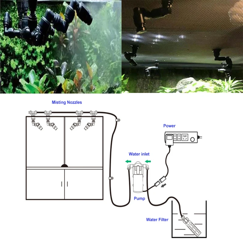 Резервуар для распыления рептилий, распылитель тумана, 360 Регулируемый аквариум для водных животных, система охлаждения 10 м, 6 насадок