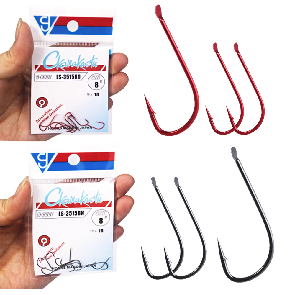 10 шт.партия, черные и красные рыболовные крючки из высокоуглеродистой стали, рыболовный крючок, не Барб gamakatsu