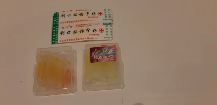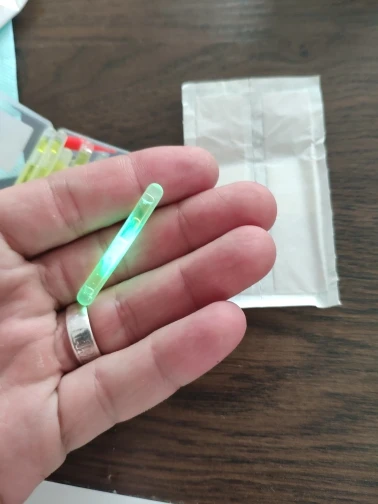 Обычные ХИС (химические источники света) Зелёного цвета. светят 3-4 часа. В холоде яркость падает в разы. В тепле светят хорошо. Брал для фотографии на выдержке. А лейкопластырь похоже подарок от продовца. как и зачем ? ну да ладно пусть будет. В Иваново добрались за месяц.