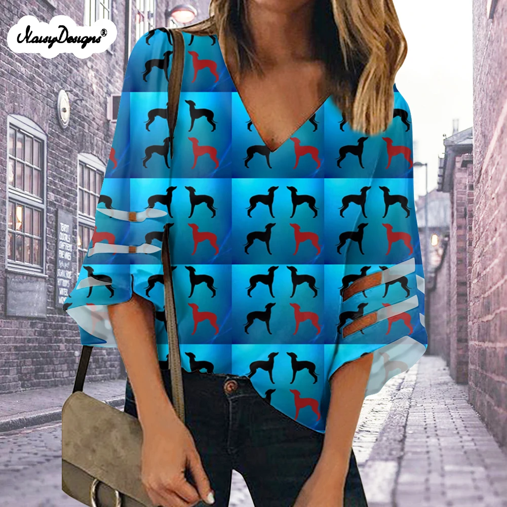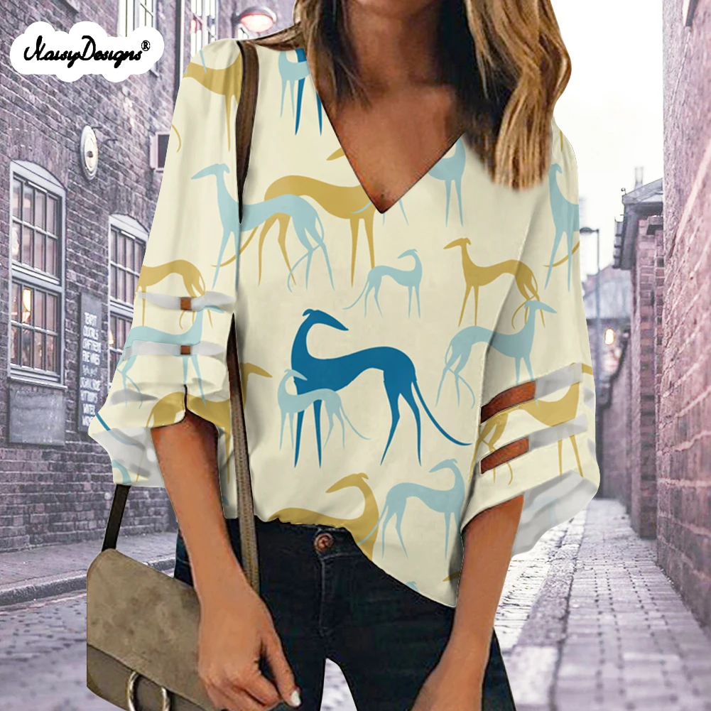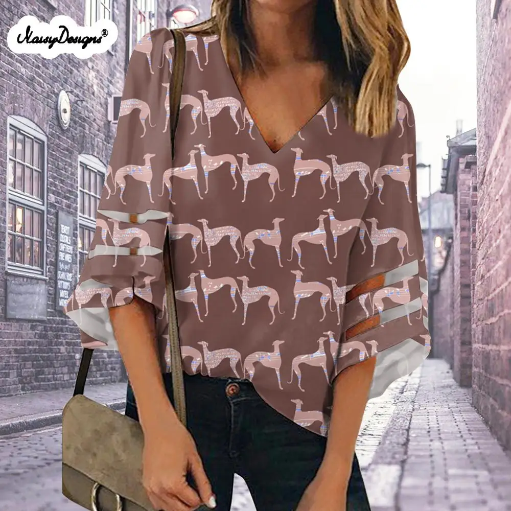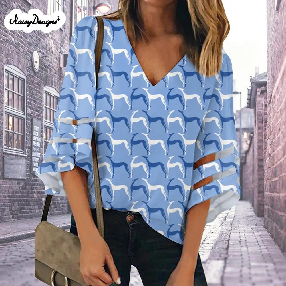 Noisydesigns новые женские топы и блузки Blusas 2021 Verano Милые серые собаки принты размера плюс XXL дропшиппинг Бесплатная Настройка