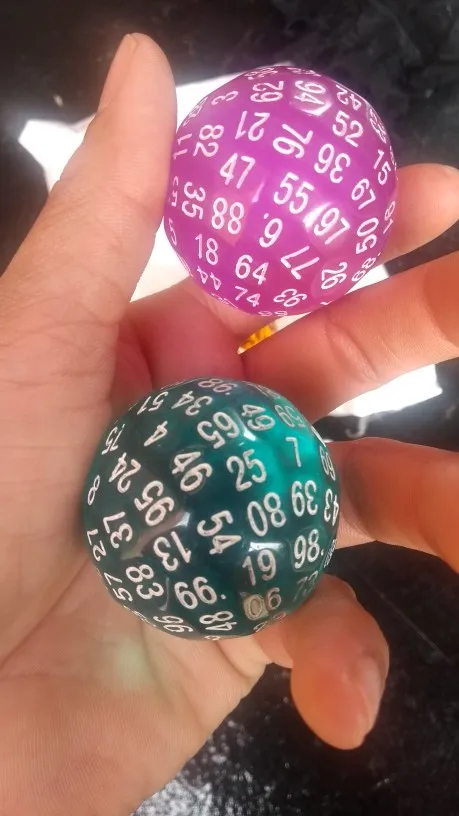 Это Потрясающие D100 кости. Да, каждый из них имеет 100 сторон и имеет номер 1-100. Они также являются большими игральными костями, отличным дополнением к любому игровому инструменту в кости.