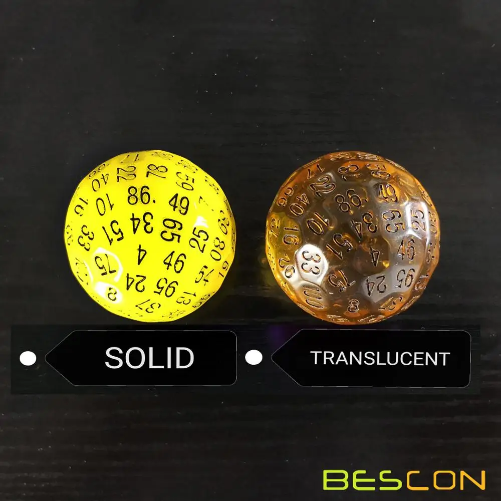 Bescon полупрозрачные многогранные кости 100 сторон кости, прозрачный D100 die, 100 сторонний куб, D100 игральные кости, 100 сторонний кубик янтаря