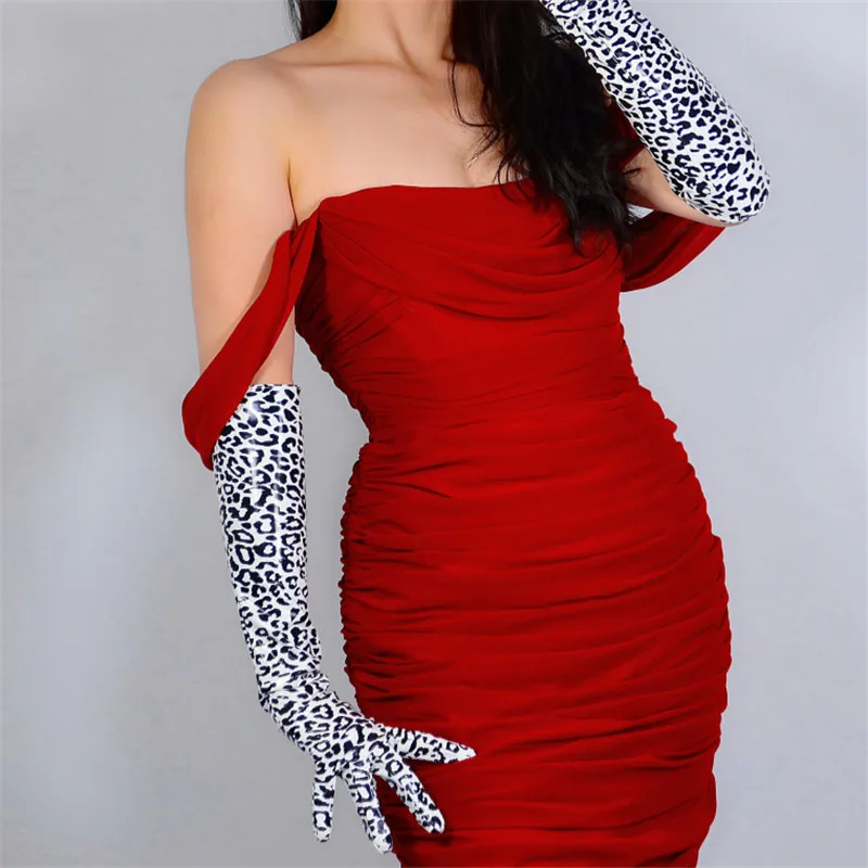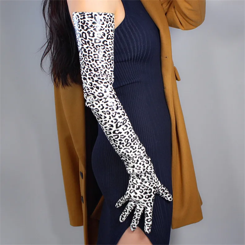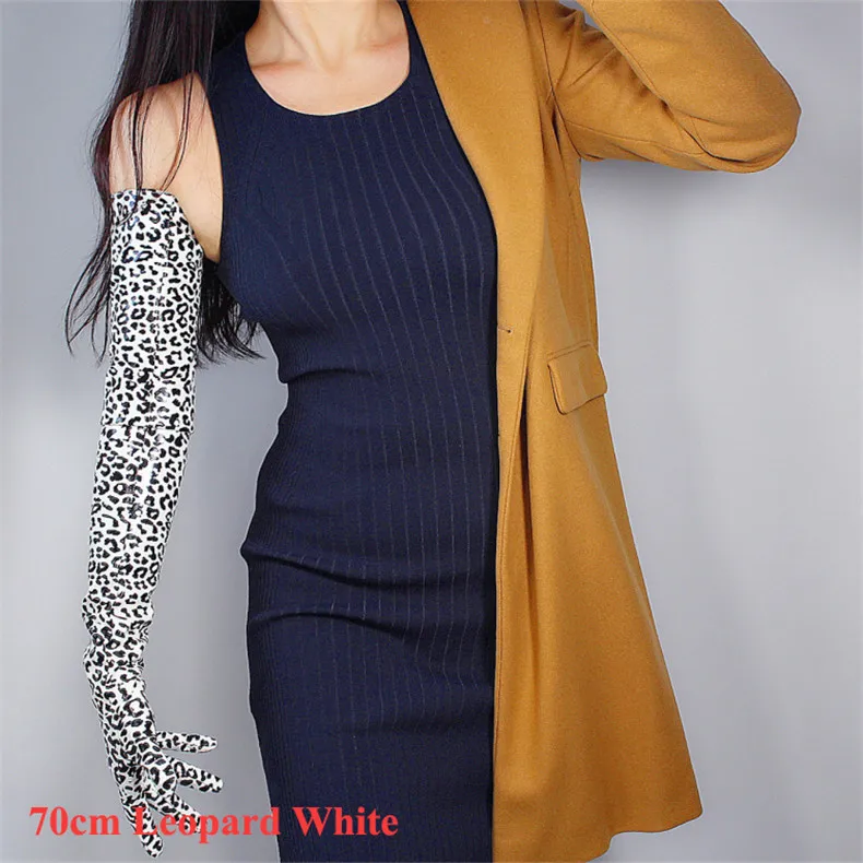 Латексные длинные перчатки из блестящей искусственной кожи, 28 дюймов, 70 см, с анималистическим принтом, черные, гепардовые, леопардовые, женские кожаные перчатки WPU201