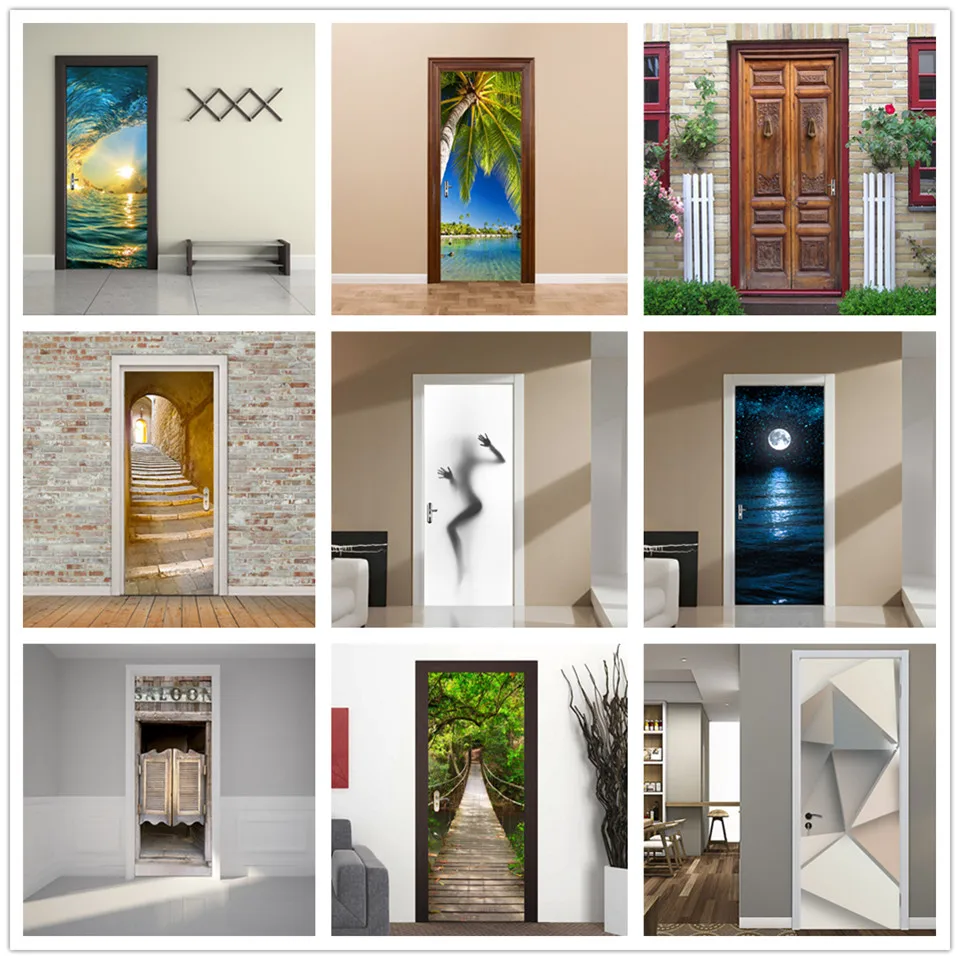 Самоклеящиеся 3D наклейки для дверей, ПВХ, водонепроницаемые наклейки для гостиной, спальни, дома