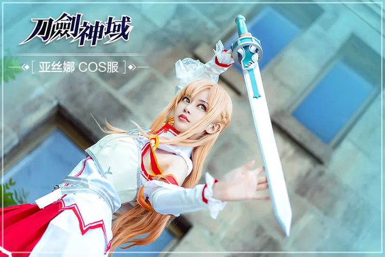 Аниме меч искусство онлайн Asuna Yuuki платье косплей костюмы униформа на Хэллоуин Сан Асуна боевой костюм наряды Полный комплект с париком