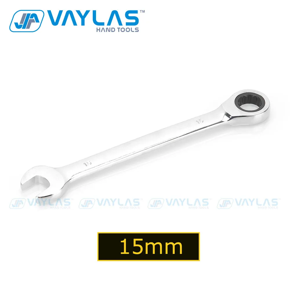 VAYLAS 15 мм комбинированный гаечный ключ с фиксированной головкой с трещинкой 72T и открытым концом с высоким крутящим моментом, зеркальный полировальный гаечный ключ для ремонта ручного инструмента