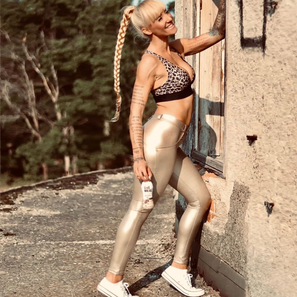 Кожаные леггинсы Melody Eco, кожаные обтягивающие леггинсы металлик, Бесшовные Джинсы для фитнеса в стиле Instagram, популярные джинсы полной длины со средней талией