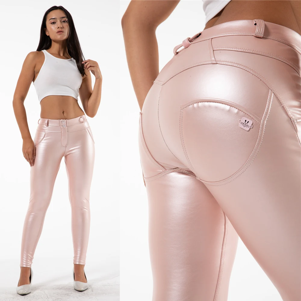 Melody Eco кожаные леггинсы, металлические кожаные штаны, обтягивающие леггинсы для фитнеса, бесшовные, Instagram, популярные джинсы, полная длина, средняя талия