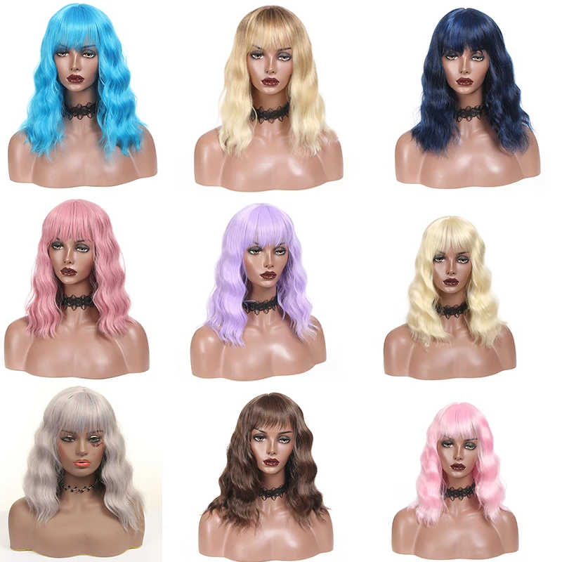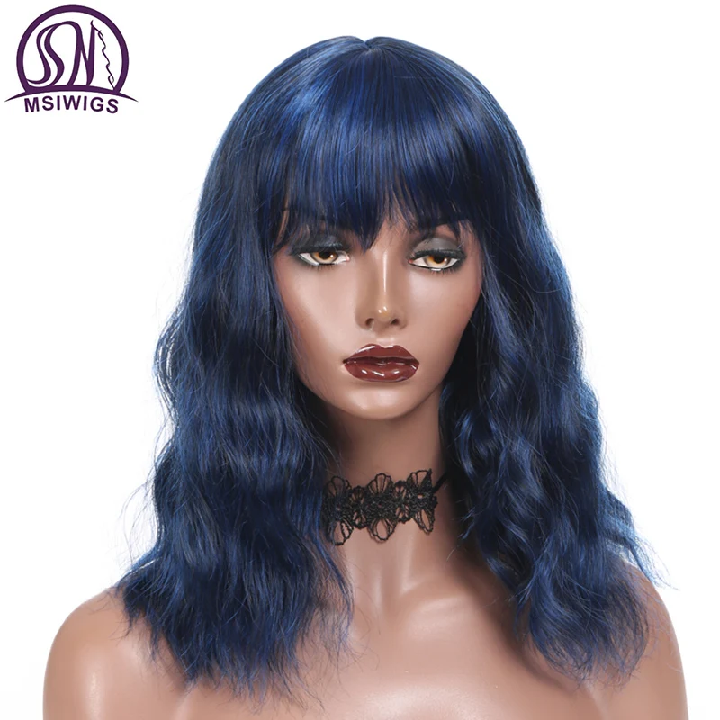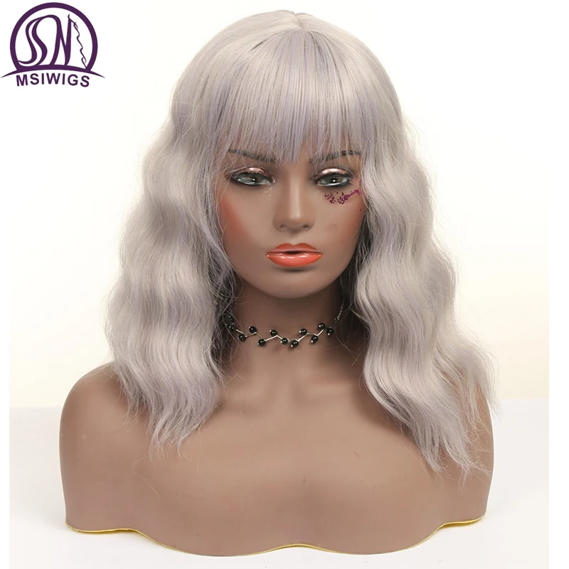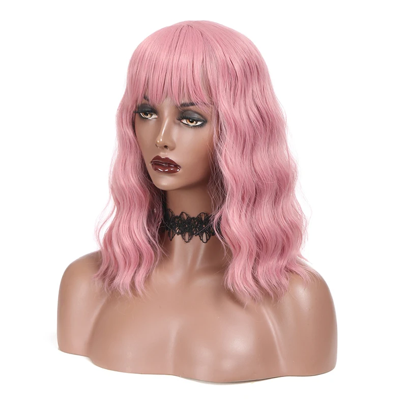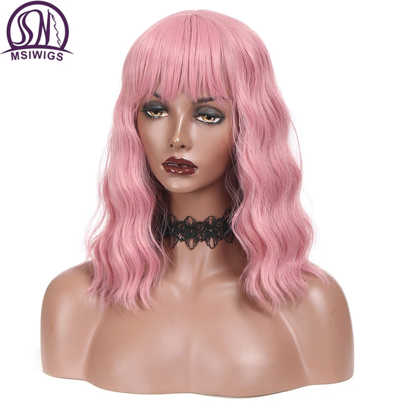 MSIWIGS Женский Средний волнистый парик Bobo, синтетические Косплей розовые волосы, парики для косплея с челкой для девочек