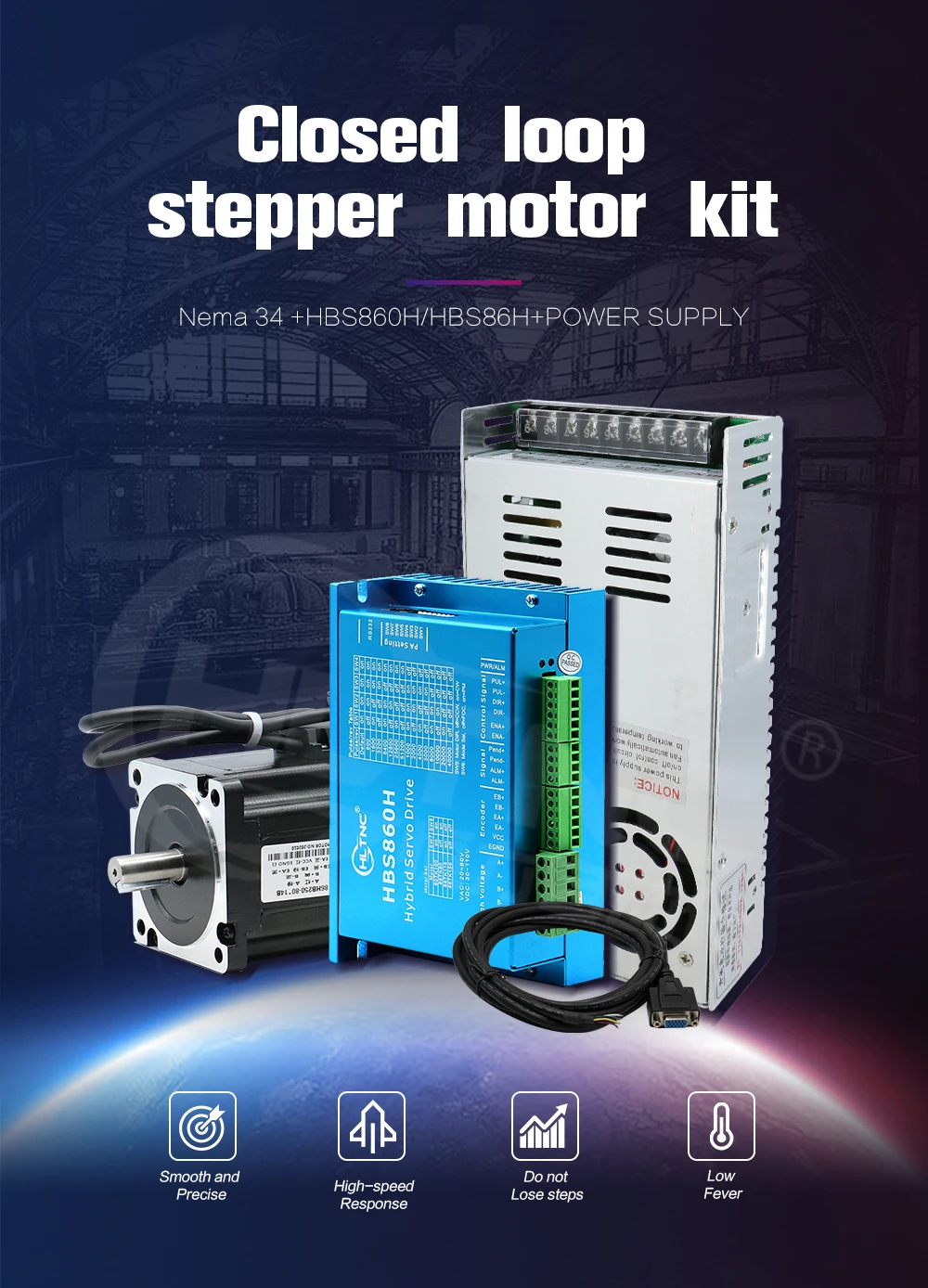 Склад в ЕСРоссии! Серводвигатель Nema34 4.5N 8.5N 12N.m с замкнутым контуром + Серводвигатель HBS860H + кабель энкодера + блок питания 400w60v для ЧПУ