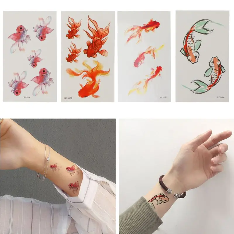 Наклейки с татуировками в виде золотой рыбки, 10 листов