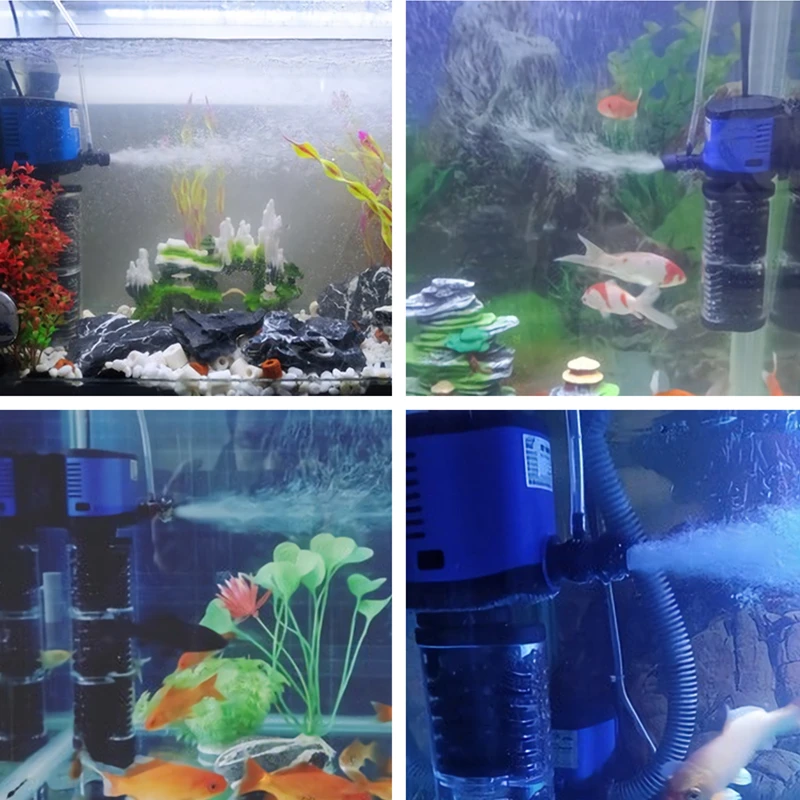Характеристика: 1. 3 в 1 фильтр выполняет три функции одновременно: фильтрация воды, циркуляция воды и добавление кислорода. 2. Энергосбережение, тихий, безопасный и надежный. 3. Бесшумная работа, длительный срок службы, сильная функция фильтрации для очистки воды. 4. Пользователь может заменить фильтрующий материал в соответствии с их собственными потребностями, с большим разнообразием.