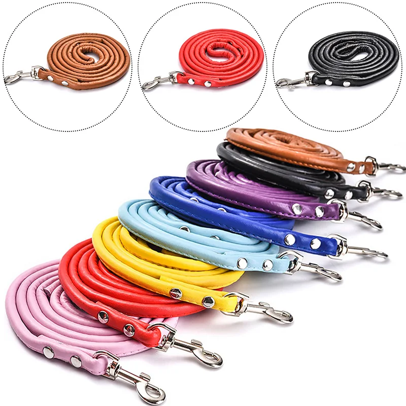 Поводок из ПУ кожи для собак, круглая веревка для маленьких и средн...