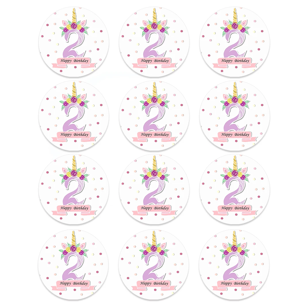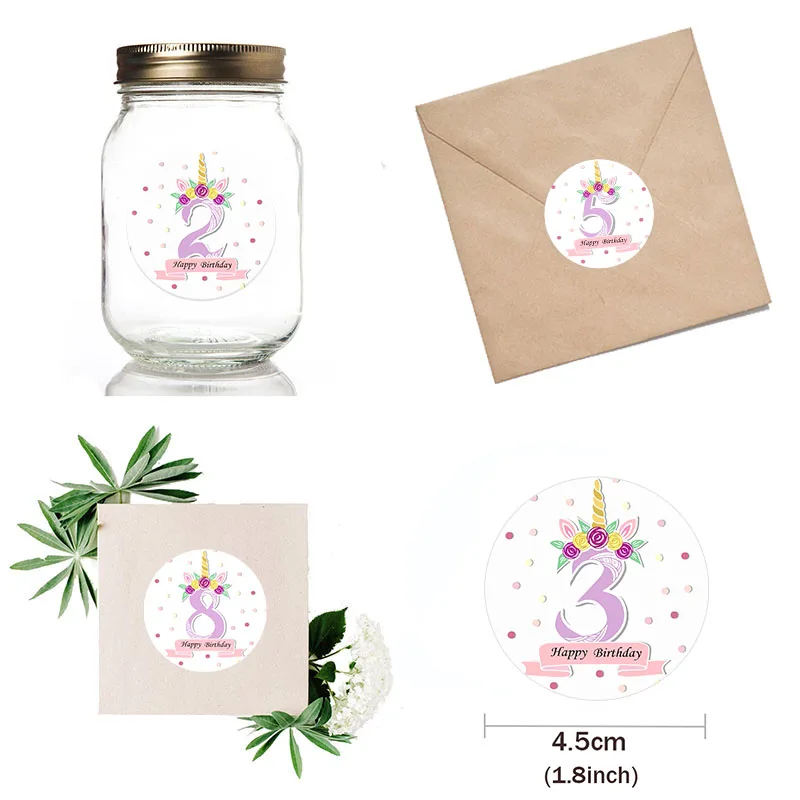 Наклейка с круглым уплотнением единорога на день рождения, Клейкая Бумажная наклейка s для вечевечерние, наклейка с цифрами, домашняя Подарочная выпечка, упаковка, декор сделай сам