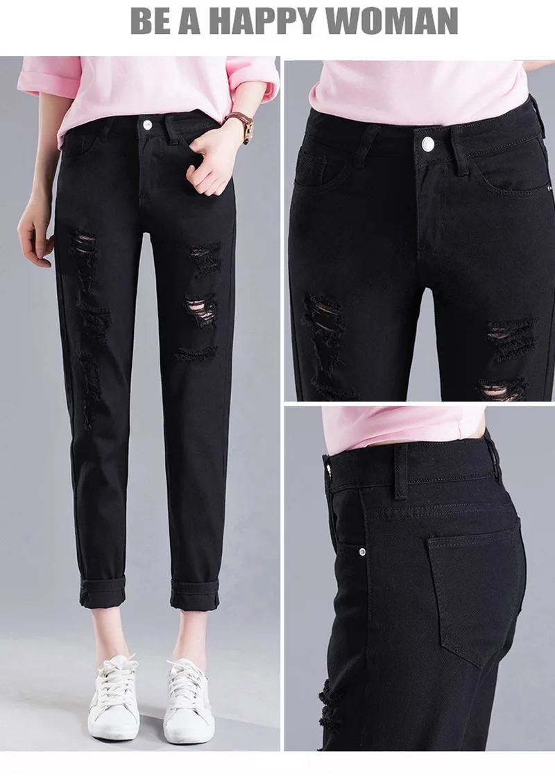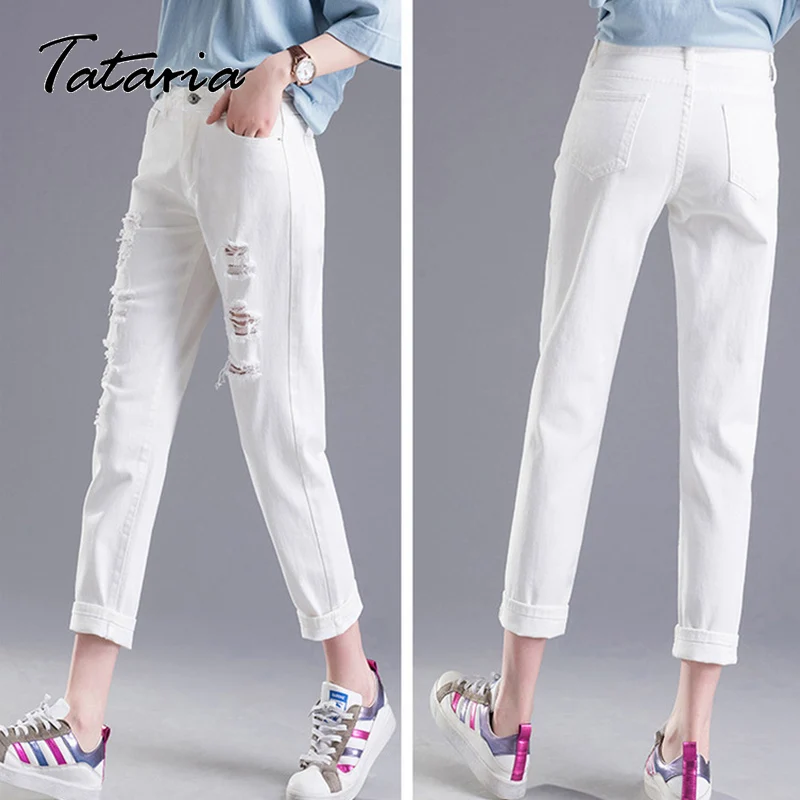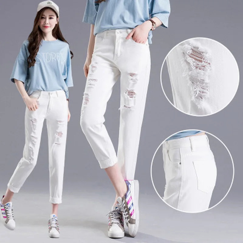 Новинка 2022, белые рваные джинсы бойфренда размера плюс, женские повседневные весенне-летние простые джинсовые штаны-шаровары, женские джинсы