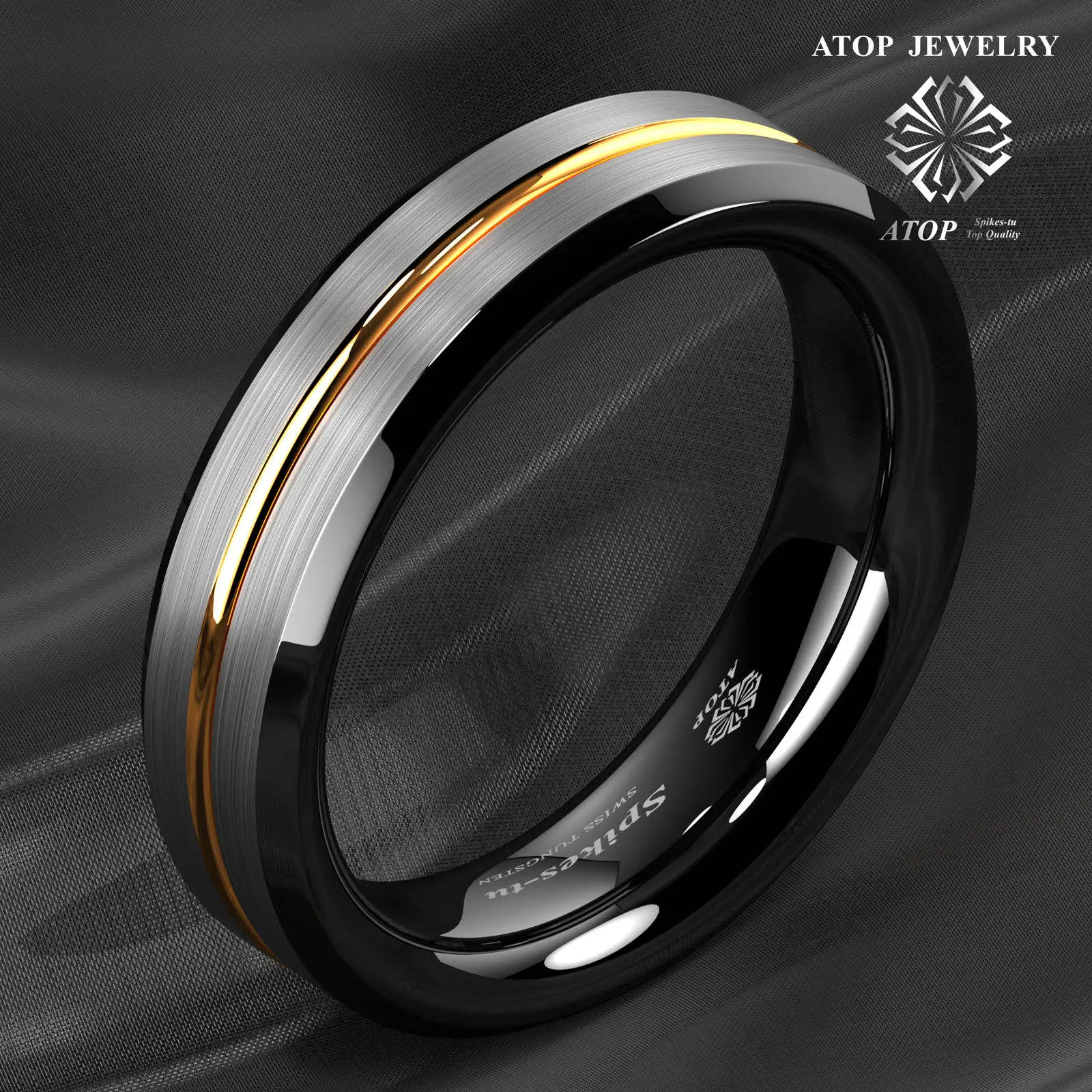 Мужское вольфрамовое кольцо ATOP 8 мм, обручальное кольцо из черног...