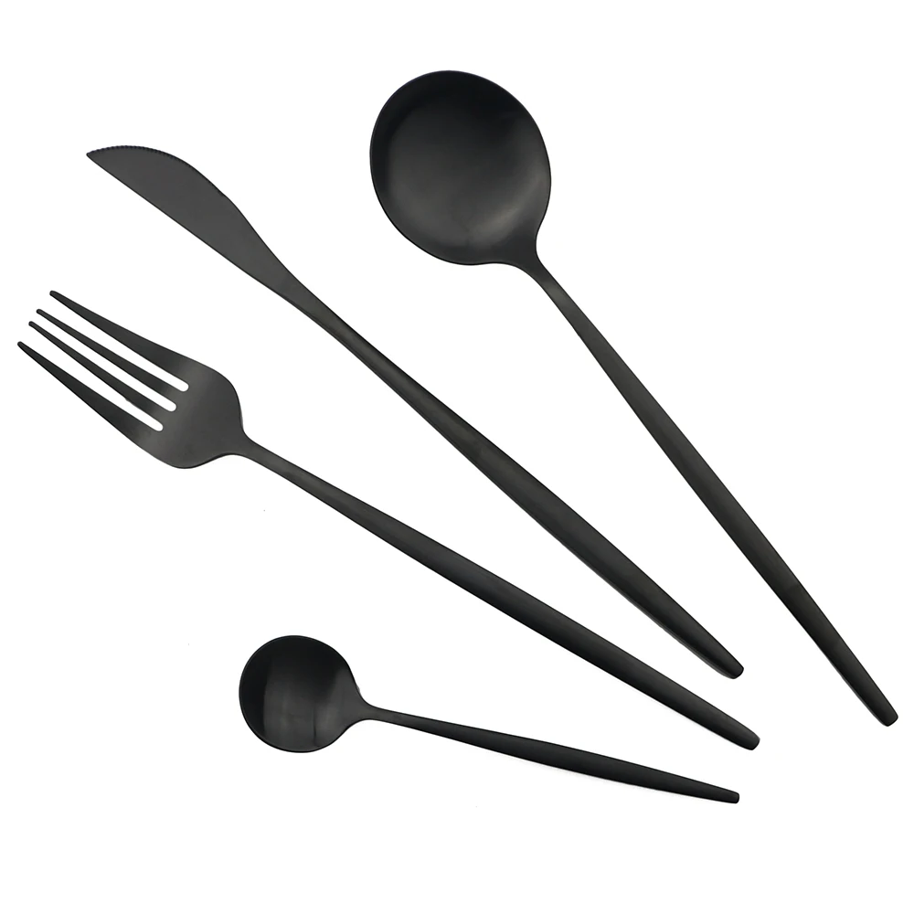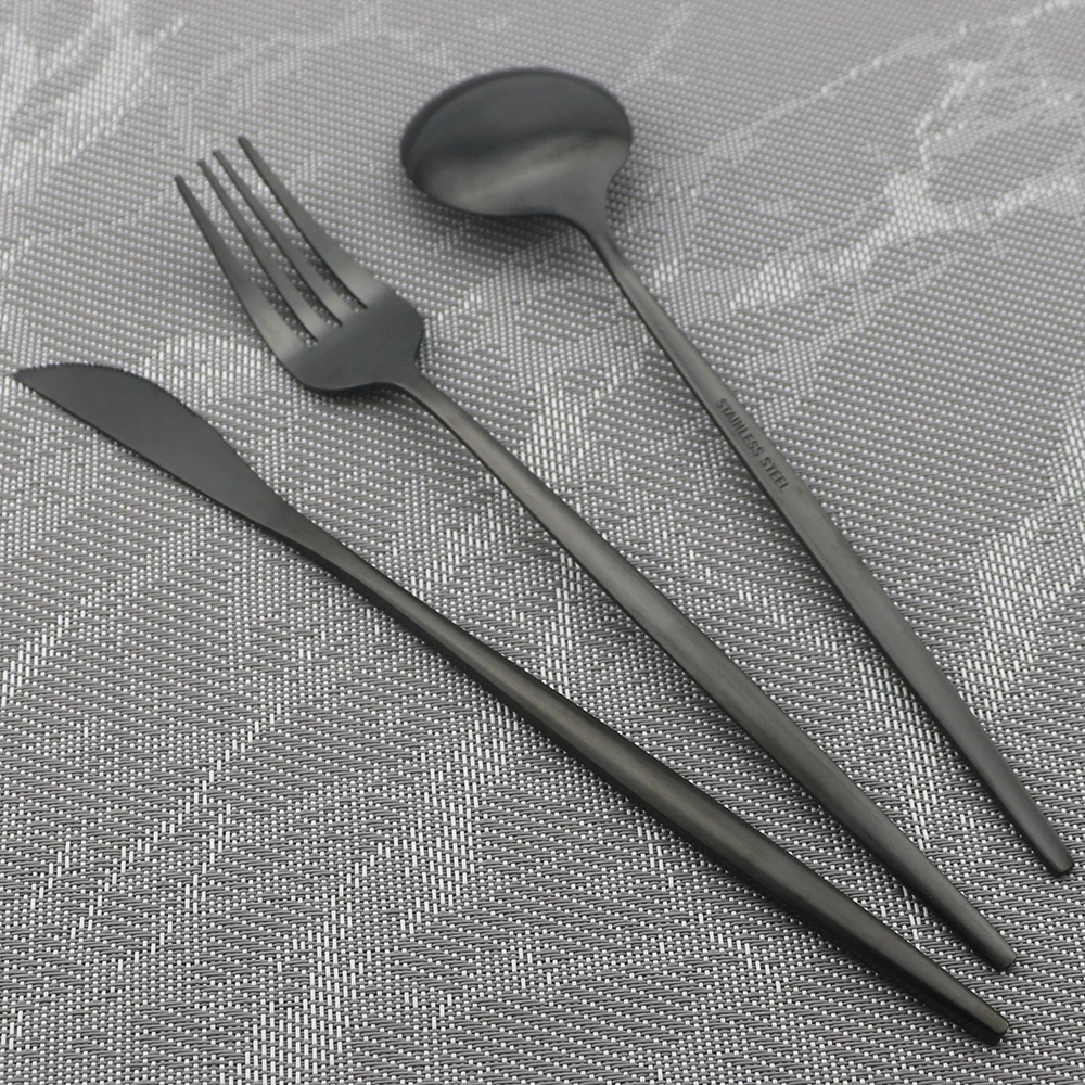 Набор столовых приборов JANKNG, черный матовый кухонный набор из нержавеющей стали, вилка, столовые приборы