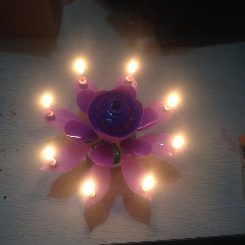 Музыкальная подсвечник Lotus для вечевечерние, топпер для торта, музыкальный цветок лотоса, вращающаяся свеча на день рождения