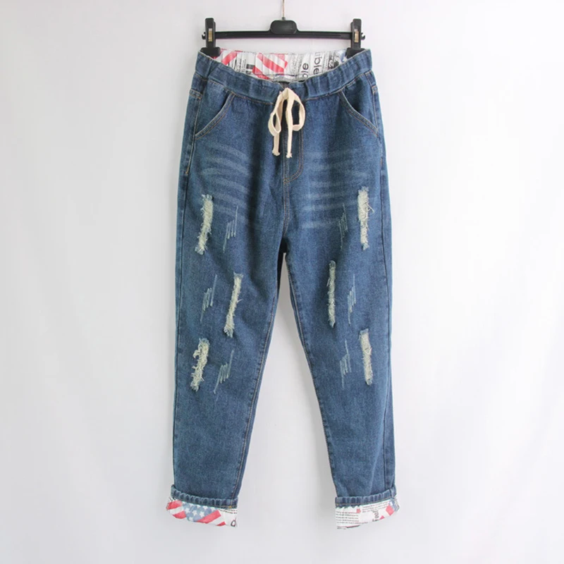 Женские джинсы с дырками JVCAKE, повседневные свободные шаровары больших размеров из хлопка, 100 кг, 4XL, 3XL, 2XL
