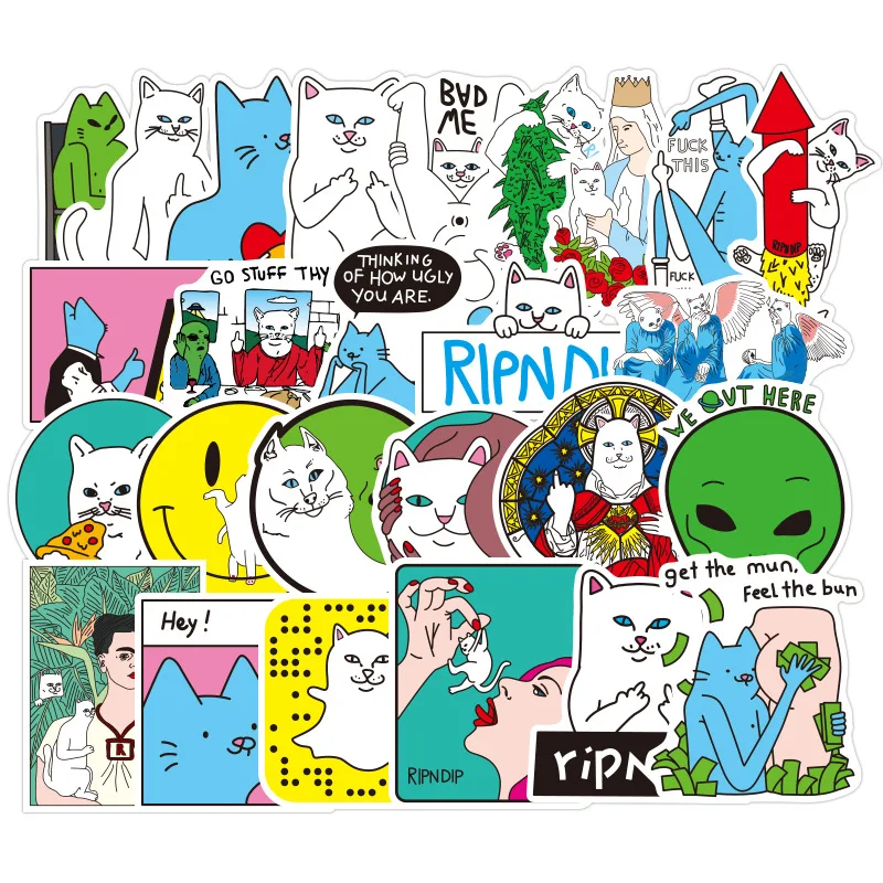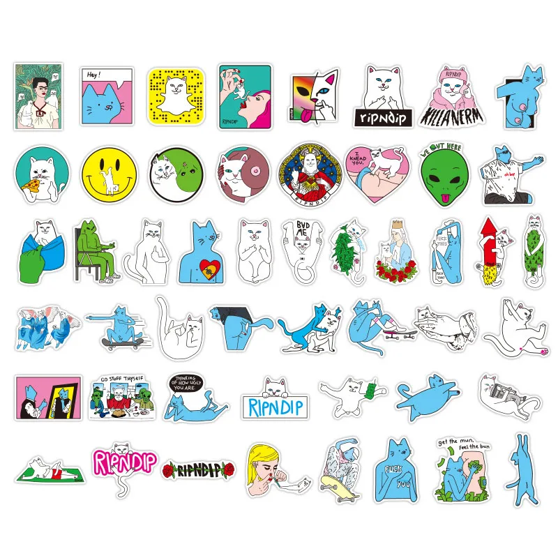 50 шт.компл. граффити в виде кошки среднего пальца для ноутбука, багажа, мотоцикла, телефона, скейтборда, ноутбука, наклейки