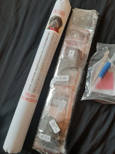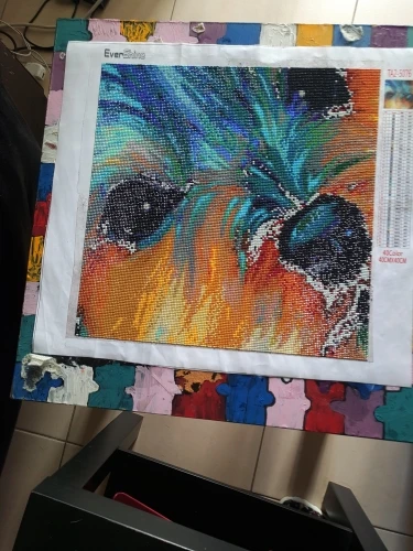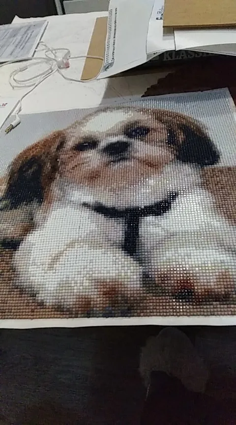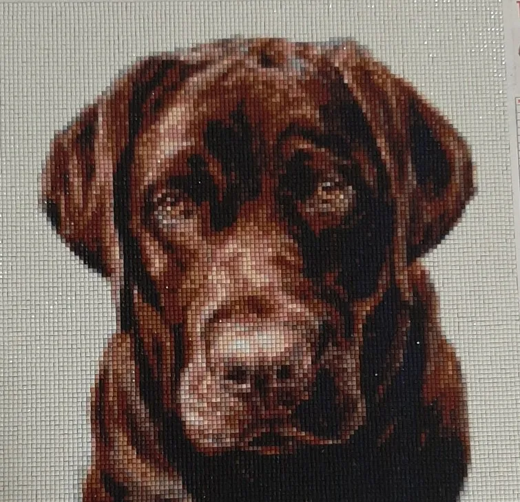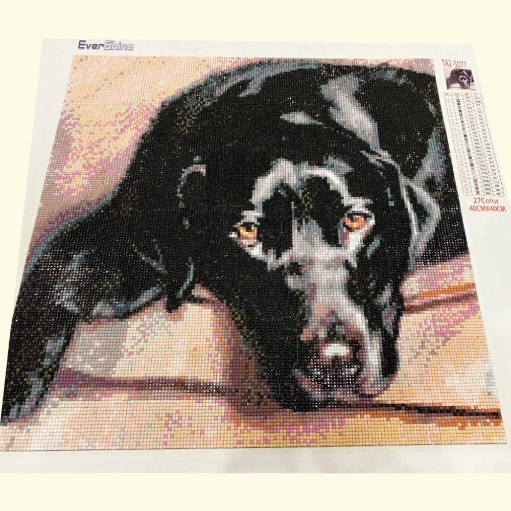 Красивая Алмазная картина. Получил для друга, у которого была собака, которая выглядела так же, как на картинке, и он прошел. Это в честь него.