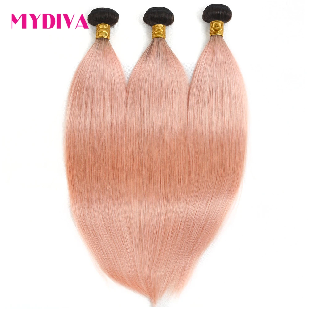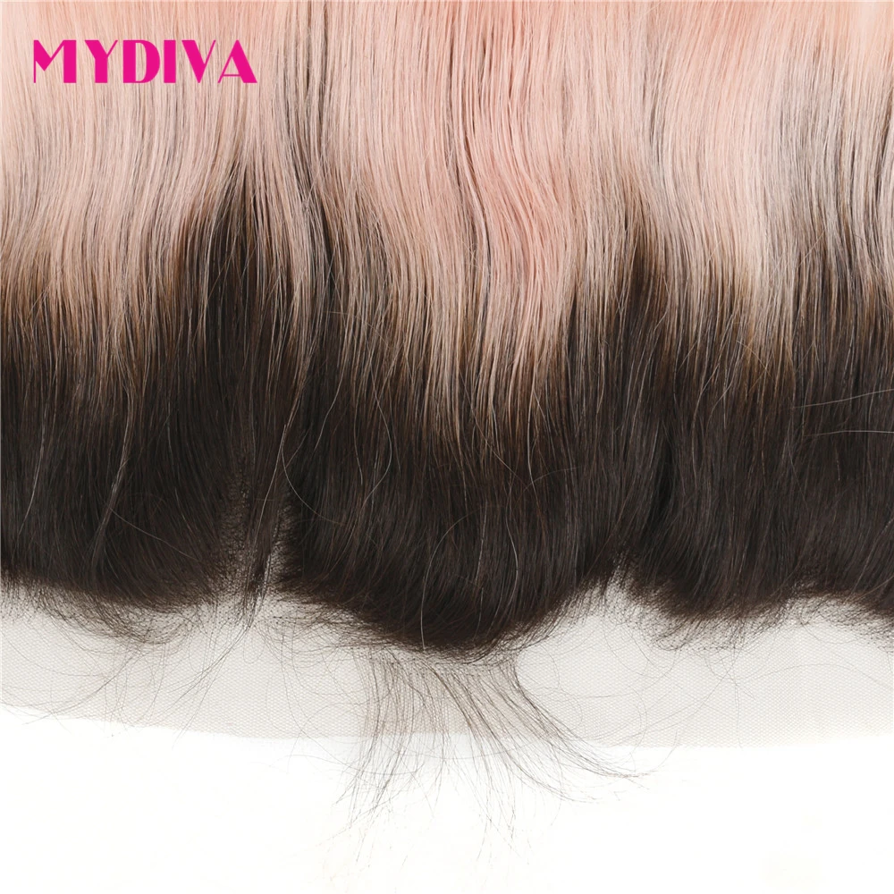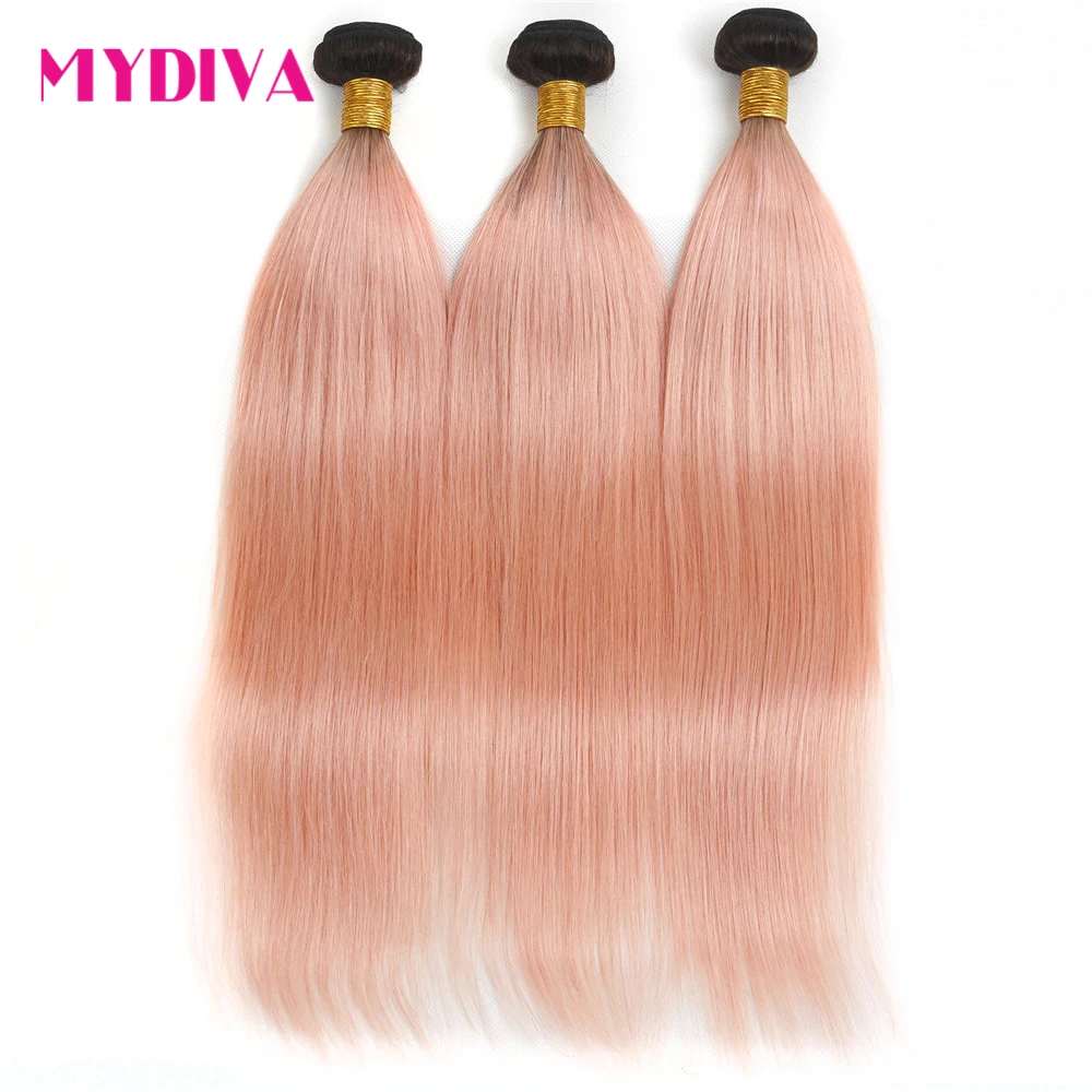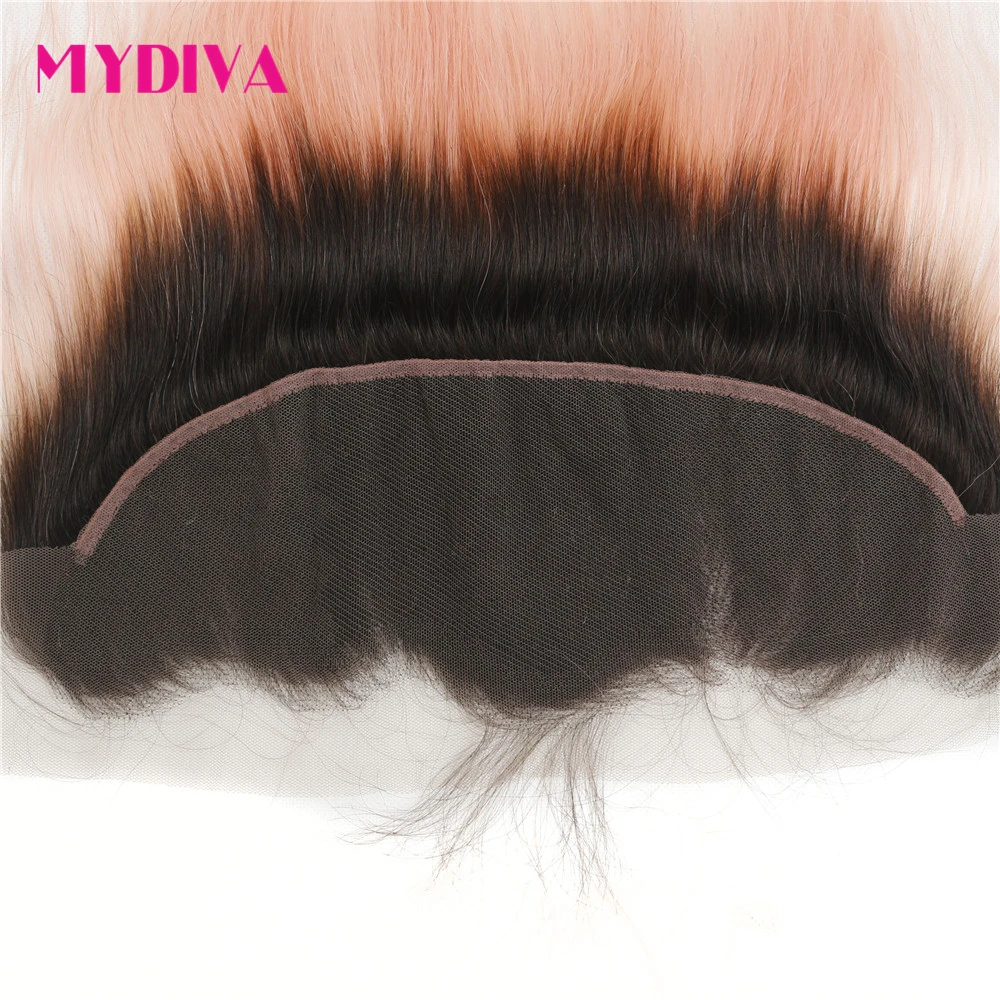 1Bрозовые пряди с фронтальной бразильской прямой Remy натуральные кудрявые пучки волос темные корни розовые человеческие волосы пряди с фронтальной