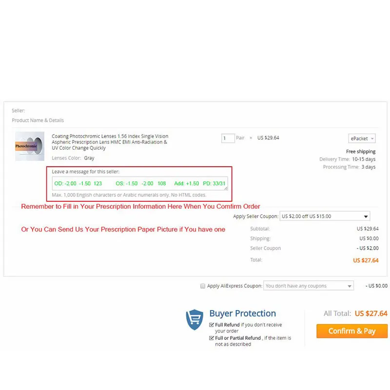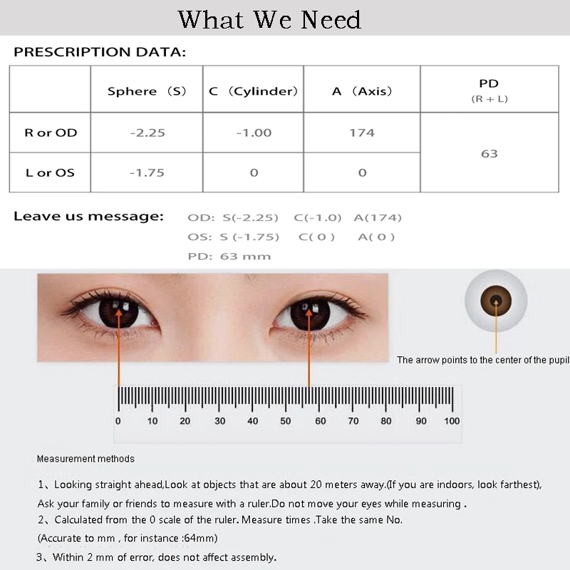 Примечание: линзы по рецепту под одним из четырех ниже условий относятся к индивидуальным объективам, фабрика линз должна изготовить линзы специально для вас, они будут запрашивать дополнительную стоимость 10 или 20 долларов США. Спасибо за понимание!