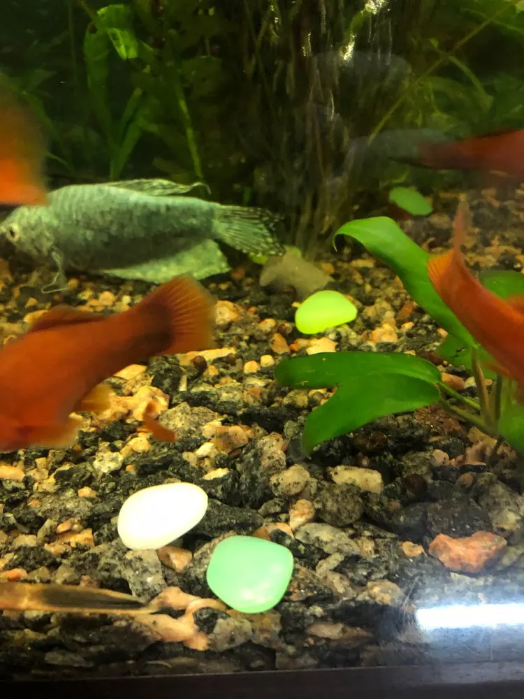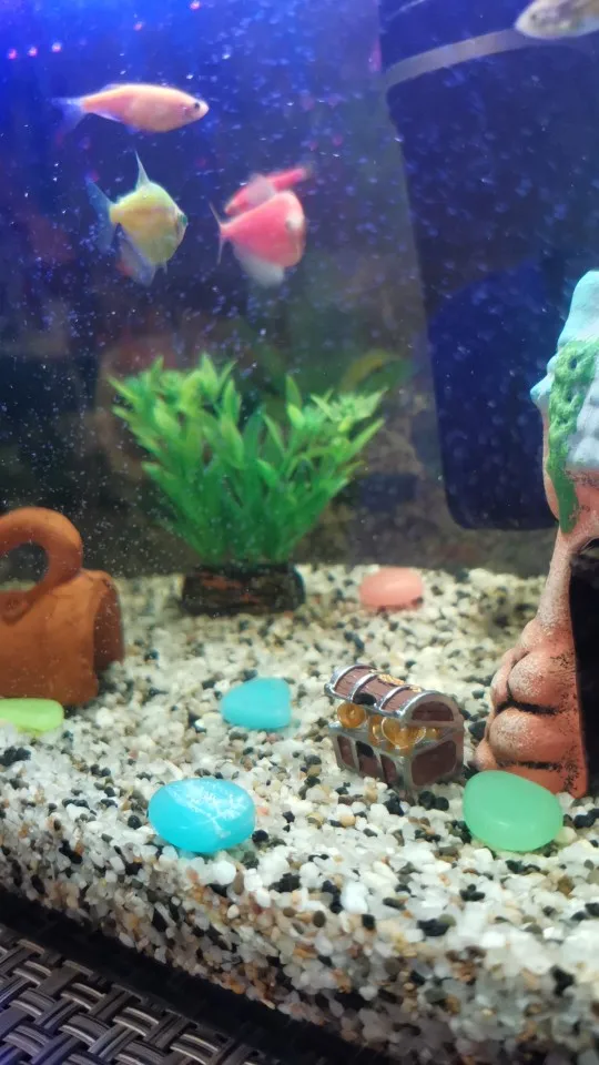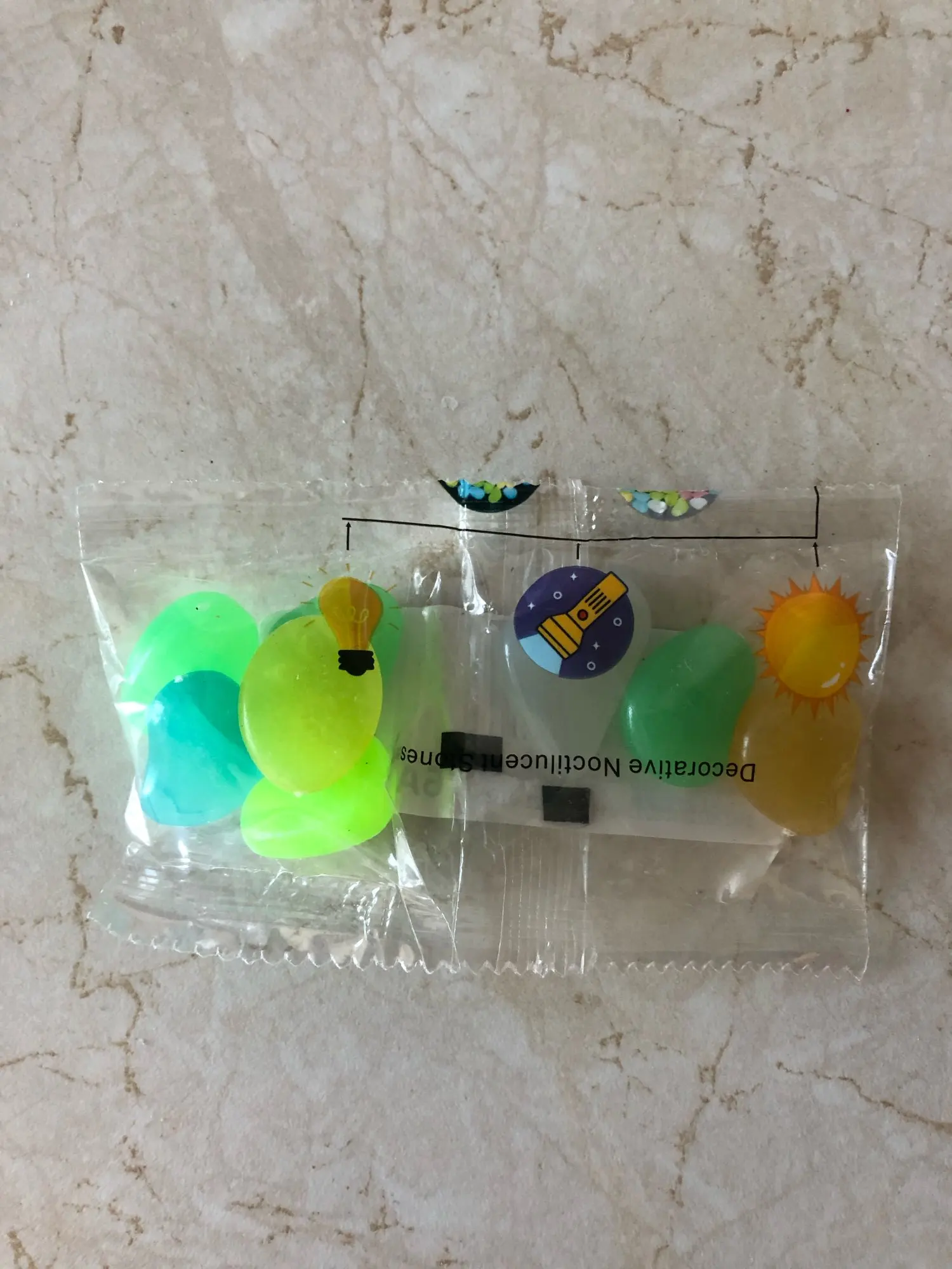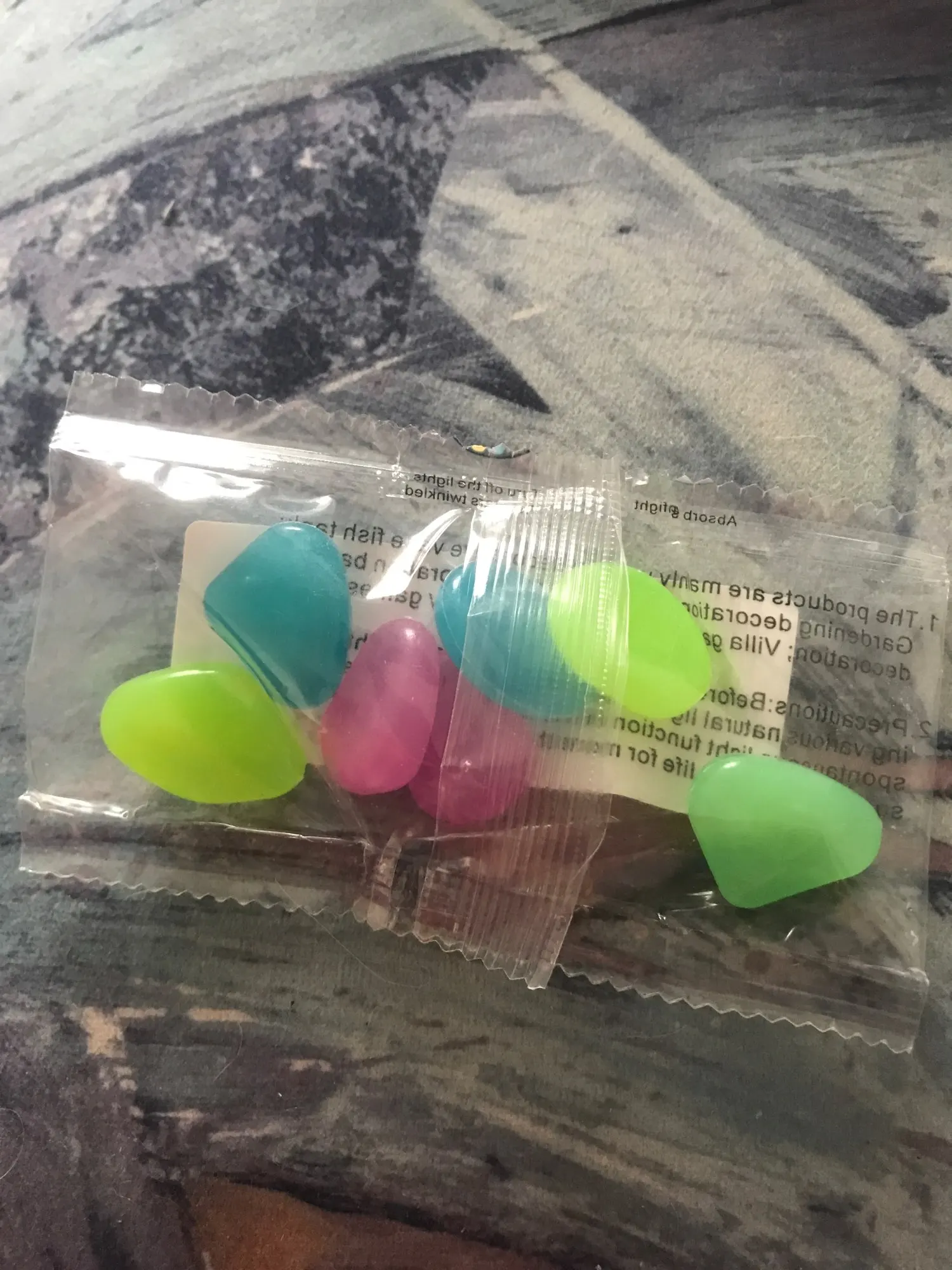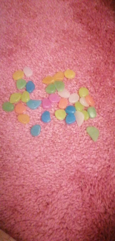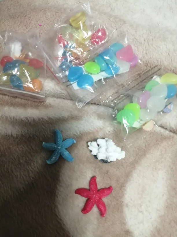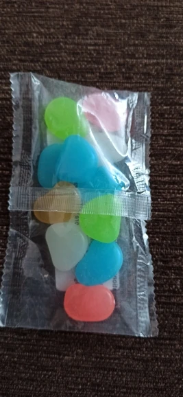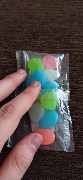 Хороший продукт Они блестят в темноте и дарят моему аквариуму приятный штрих. Я бы купил снова без колебаний. Размеры камней больше или меньше, чем у монеты 2 евро.