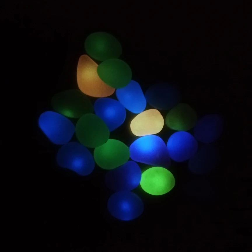 Камушки светятся в темноте .