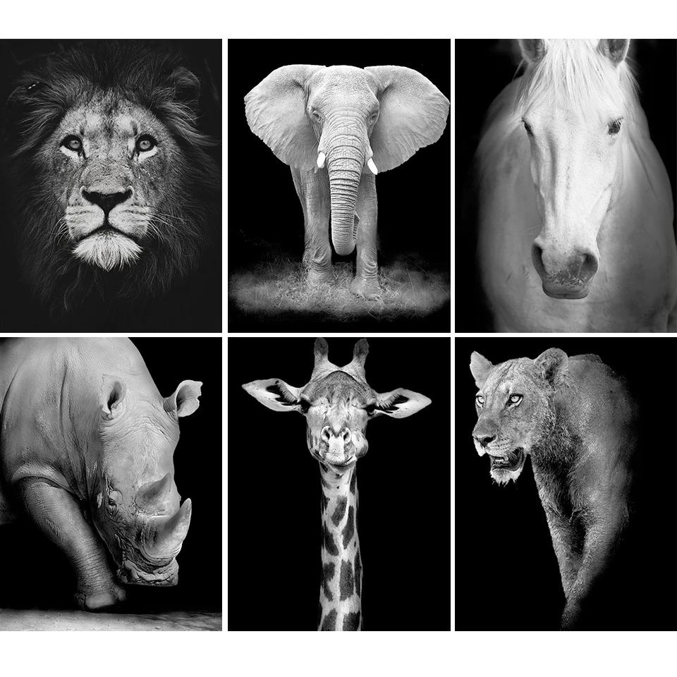 5D алмазная живопись сделай сам, черное, белое животное, льв, слон, вышивка, мозаика, картина для гостиной, минималистичный, любовь, Декор, подарок