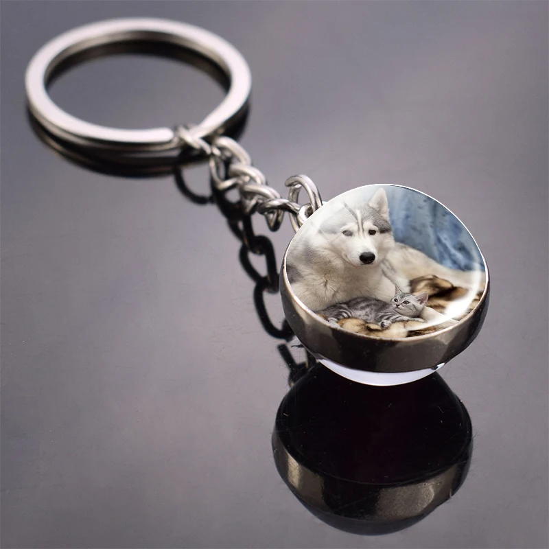 Милая лиса, животное, стеклянный шар, брелок, модный двухсторонний ...