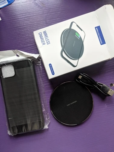 1 беспроводная зарядная панель Qi (10 Вт); 1 * кабель Micro USB; 1 * Черный чехол ТПУ.