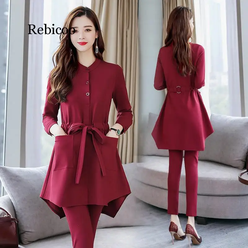 Костюм женский твидовый однотонный, размера плюс комплекты одежды из двух предметов, в Корейском стиле