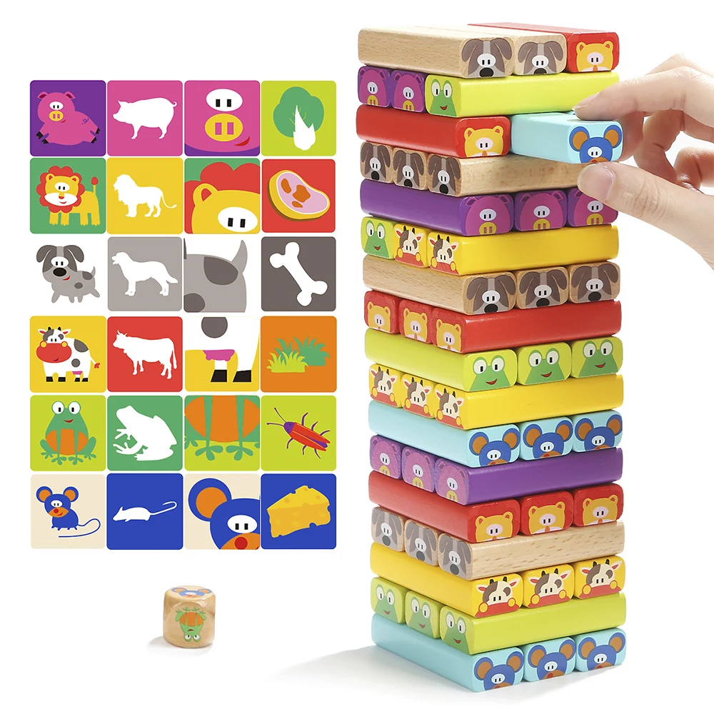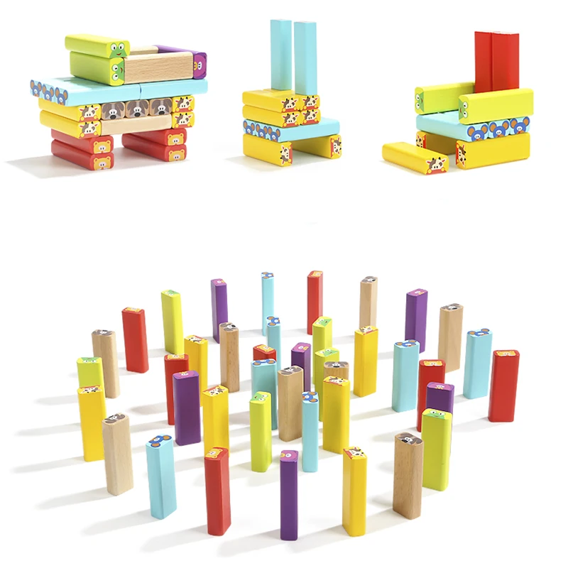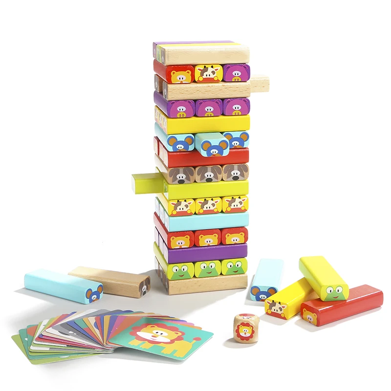 Забавная мини деревянная башня из лиственных пород домино штабелер экстракт строительные блоки игрушка животное Монтессори образовательная игра для детей подарок