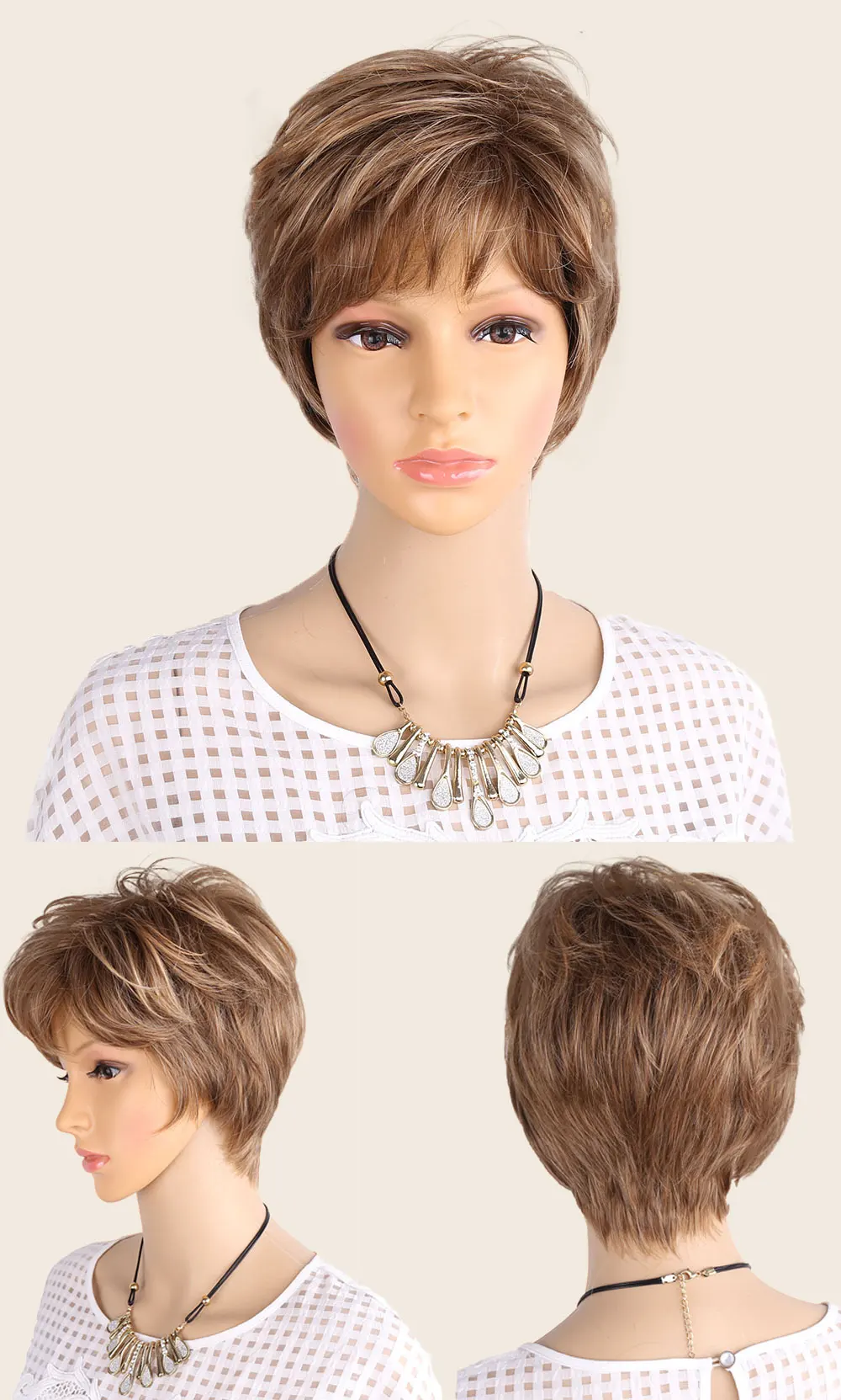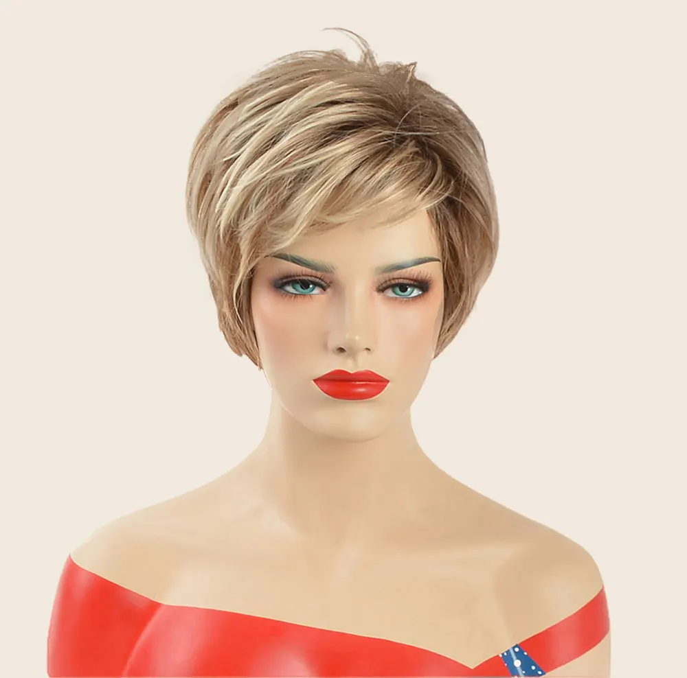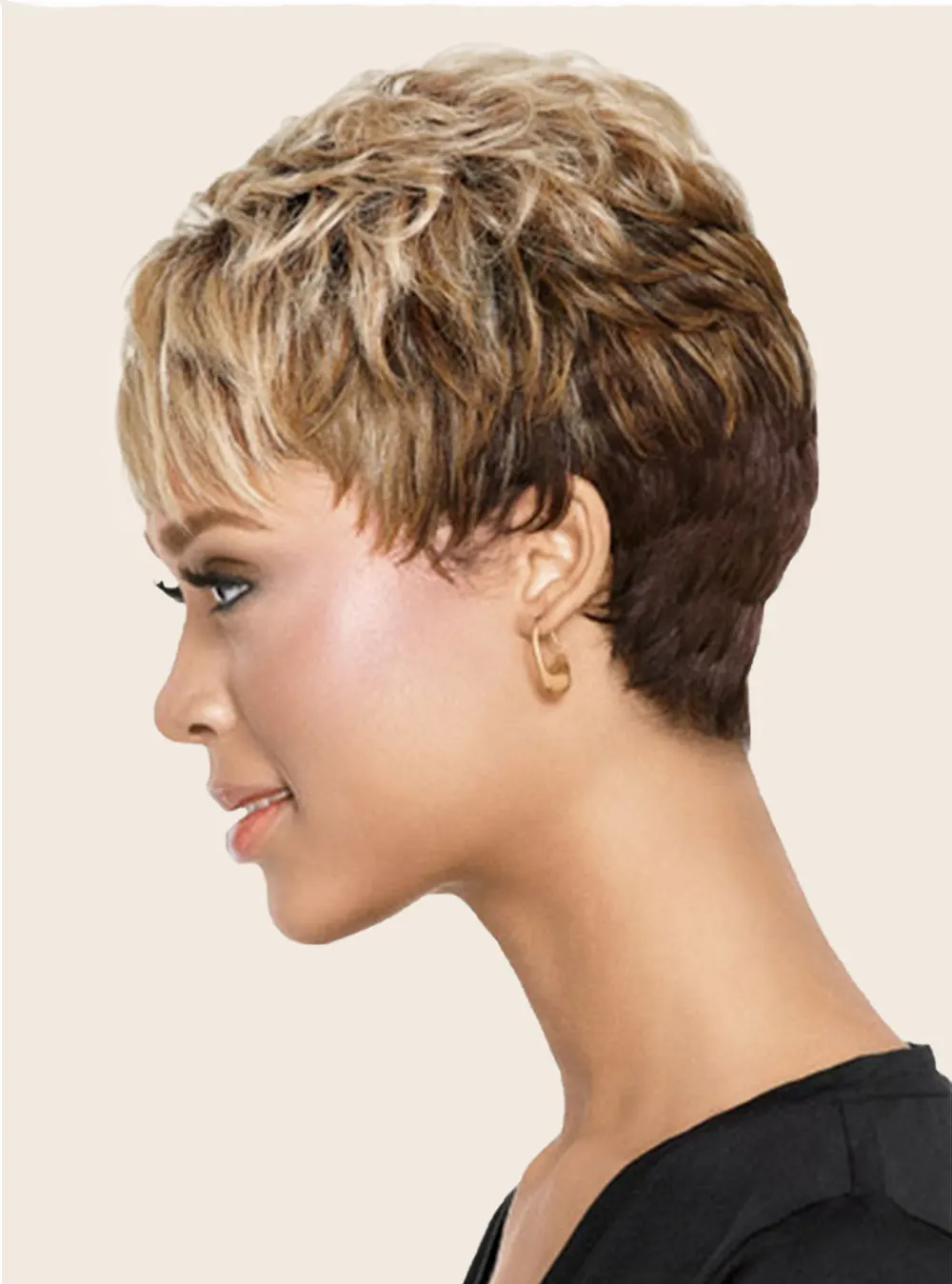Парик Amir из коротких волос Блонд, многослойные вьющиеся волосы, смешанные прямые волосы для бровей, синтетические мужские парики для косплея Для чернокожих женщин, парик с челкой