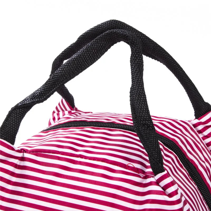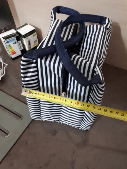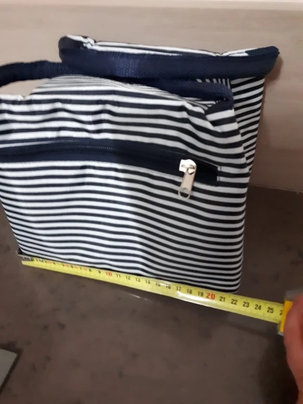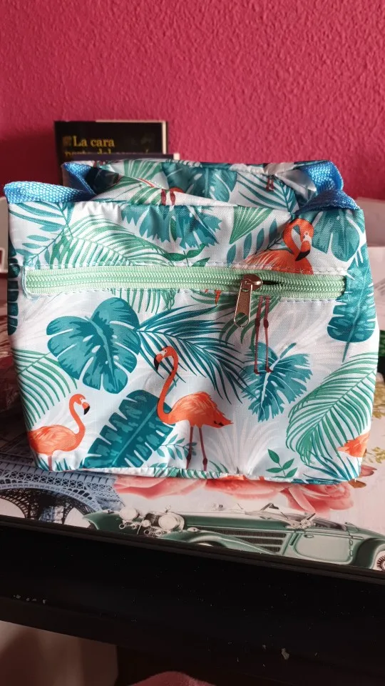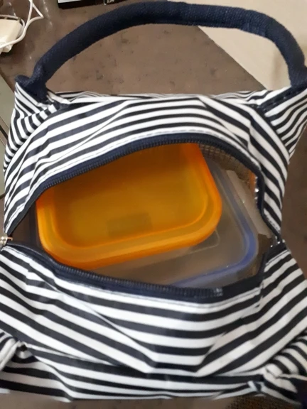 Это очень красиво и круто. Это немного мало, но они подходят 2 tuppers, столовые приборы, фрукты, хлеб и йогурт. Это больше, чем кажется, когда вы видите это в первый раз.