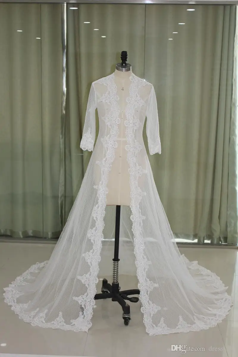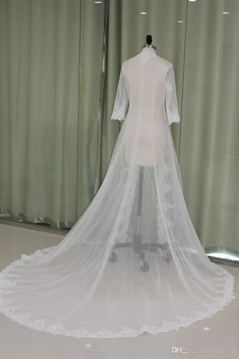 Кружевная Свадебная куртка с аппликацией, с длинным рукавом, трапециевидной формы, со шлейфом, цвета слоновой кости, Тюлевое свадебное платье, куртка, накидка, пальто