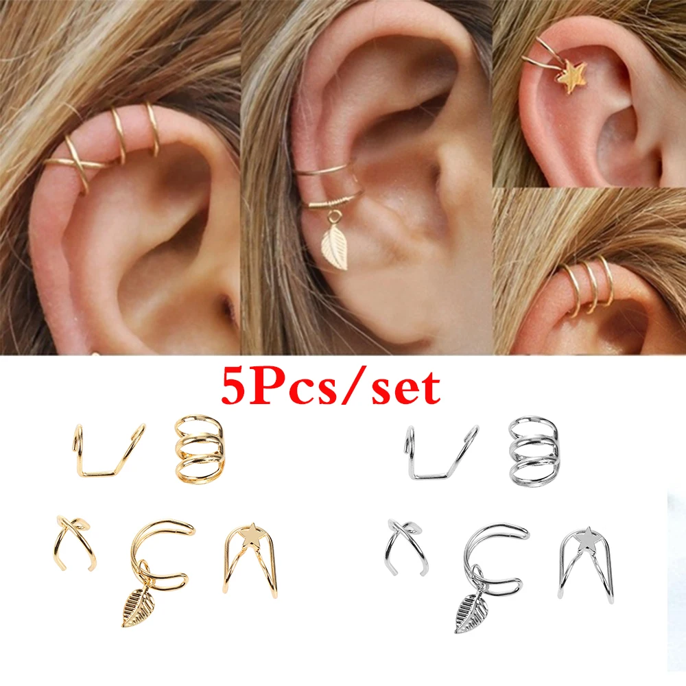 5 шт. модные кафф на ухо клип на серьги в Корейском стиле, с принтом маленькая звезда, НЕ ПИРСИНГ клип серьги, Надеваемые На ушной хрящ Для женщин Модные украшения подарок