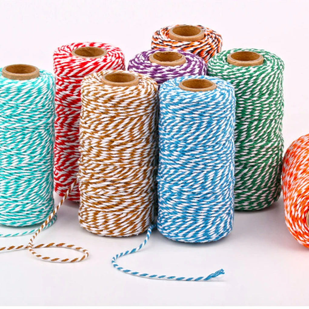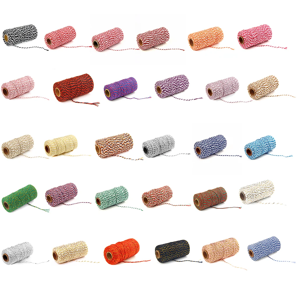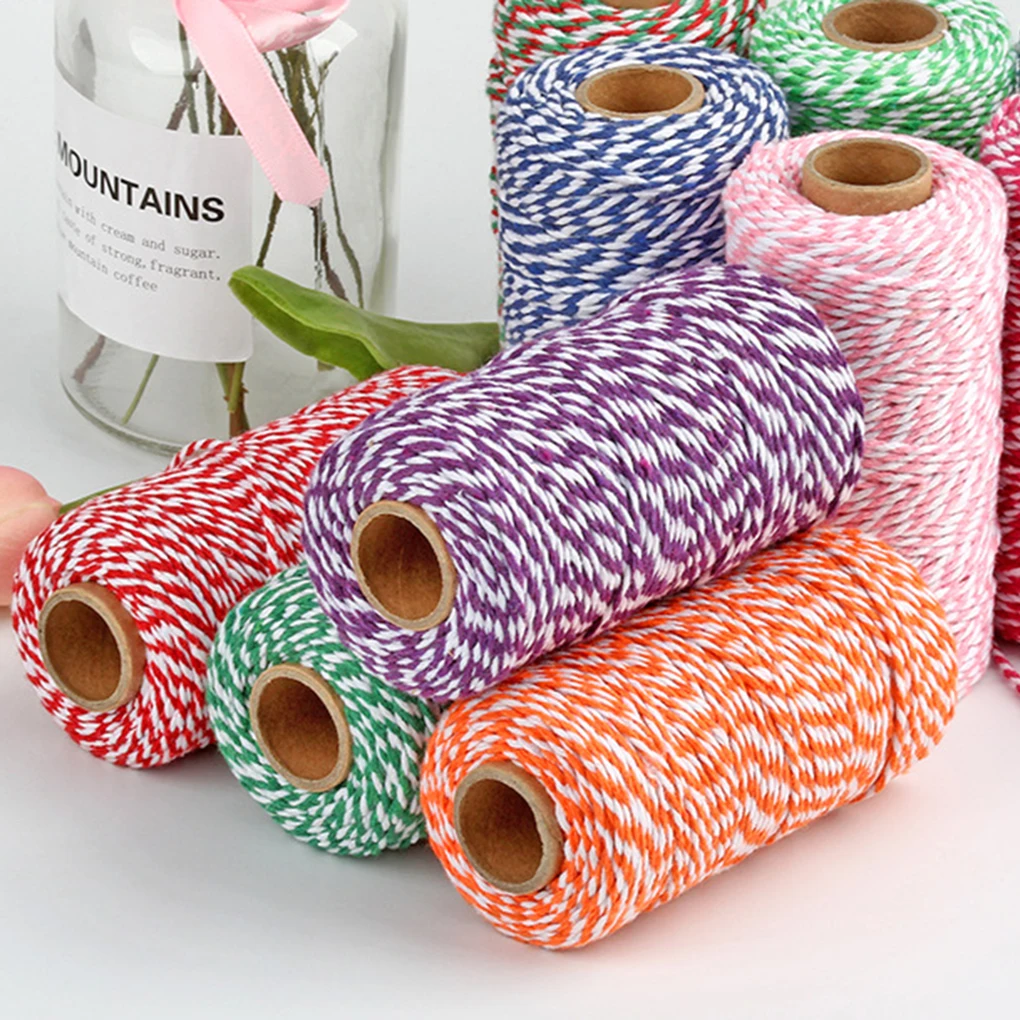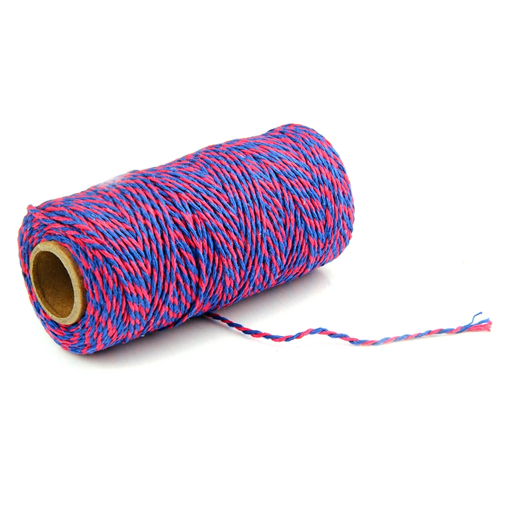 100 м * 2 мм двухцветная хлопковая веревка, шпагат для аксессуаров ручной работы, вечерние, свадебные украшения, подарок, принадлежности для изготовления шнуров своими руками