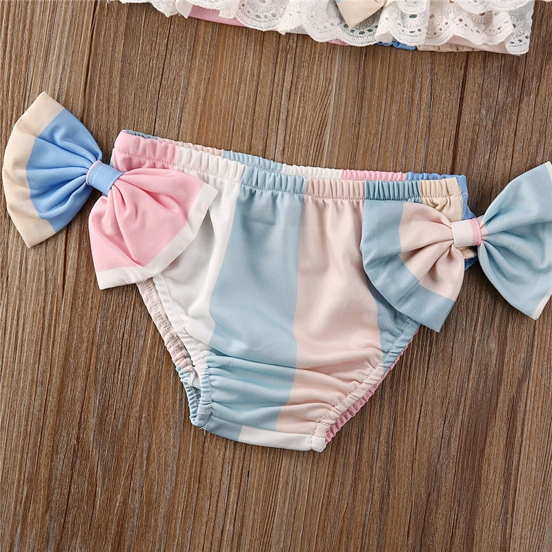 Комплект бикини с цветочным принтом для маленьких девочек, купальный костюм с кружевным бантом без бретелек, укороченный топ и трусики, шапка, купальные костюмы из 3 предметов, 2020