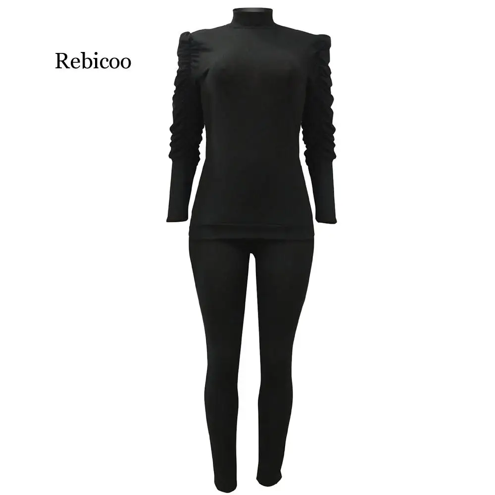 Женский трикотажный спортивный костюм из двух предметов, элегантный офисный костюм с длинным рукавом, размера плюс одежда для отдыха и отдыха, комплект из 2 предметов