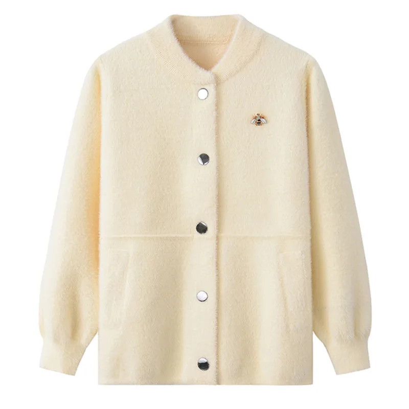 Свитер UHYTGF на весну и осень, Женская куртка, норковый кашемировый кардиган, женские повседневные теплые короткие топы, пальто, женский свитер, модель 1234