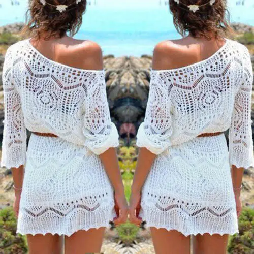 Женское кружевное вязаное бикини, накидка, купальный костюм, Пляжное Платье в стиле бохо, вязаные топы, бикини, женские платья