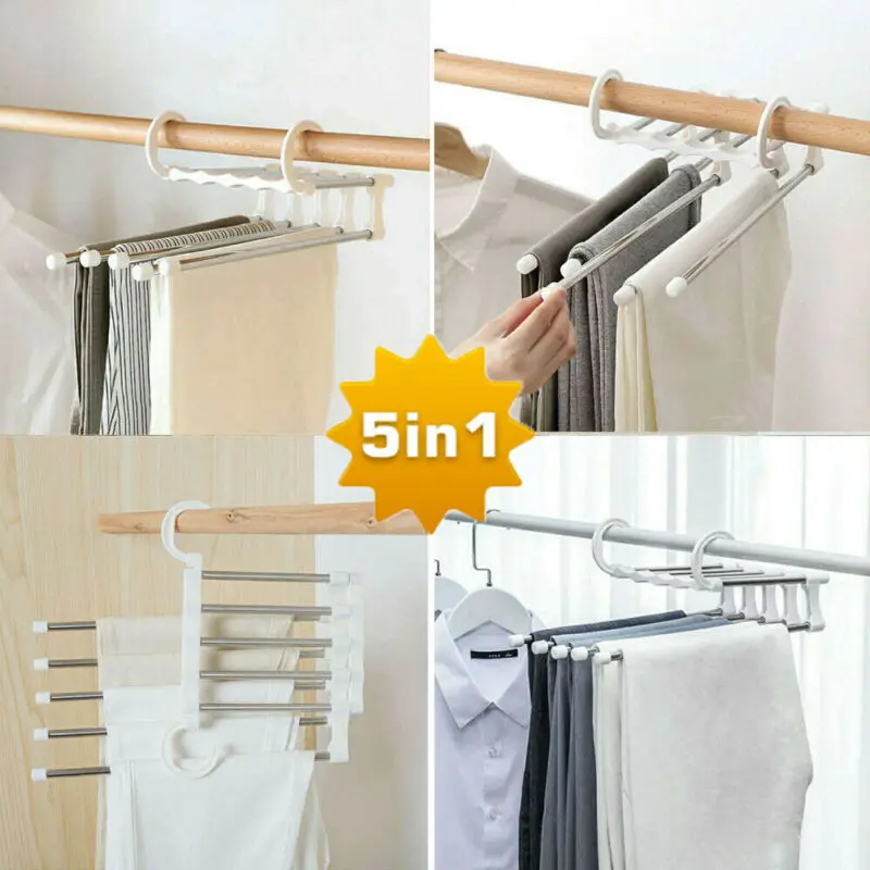 Полка для штанов 5 в 1 из нержавеющей стали многофункциональный шкаф Волшебная вешалка