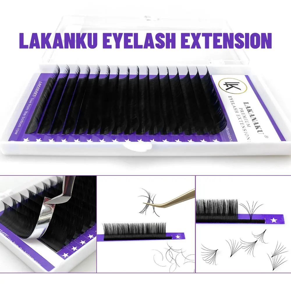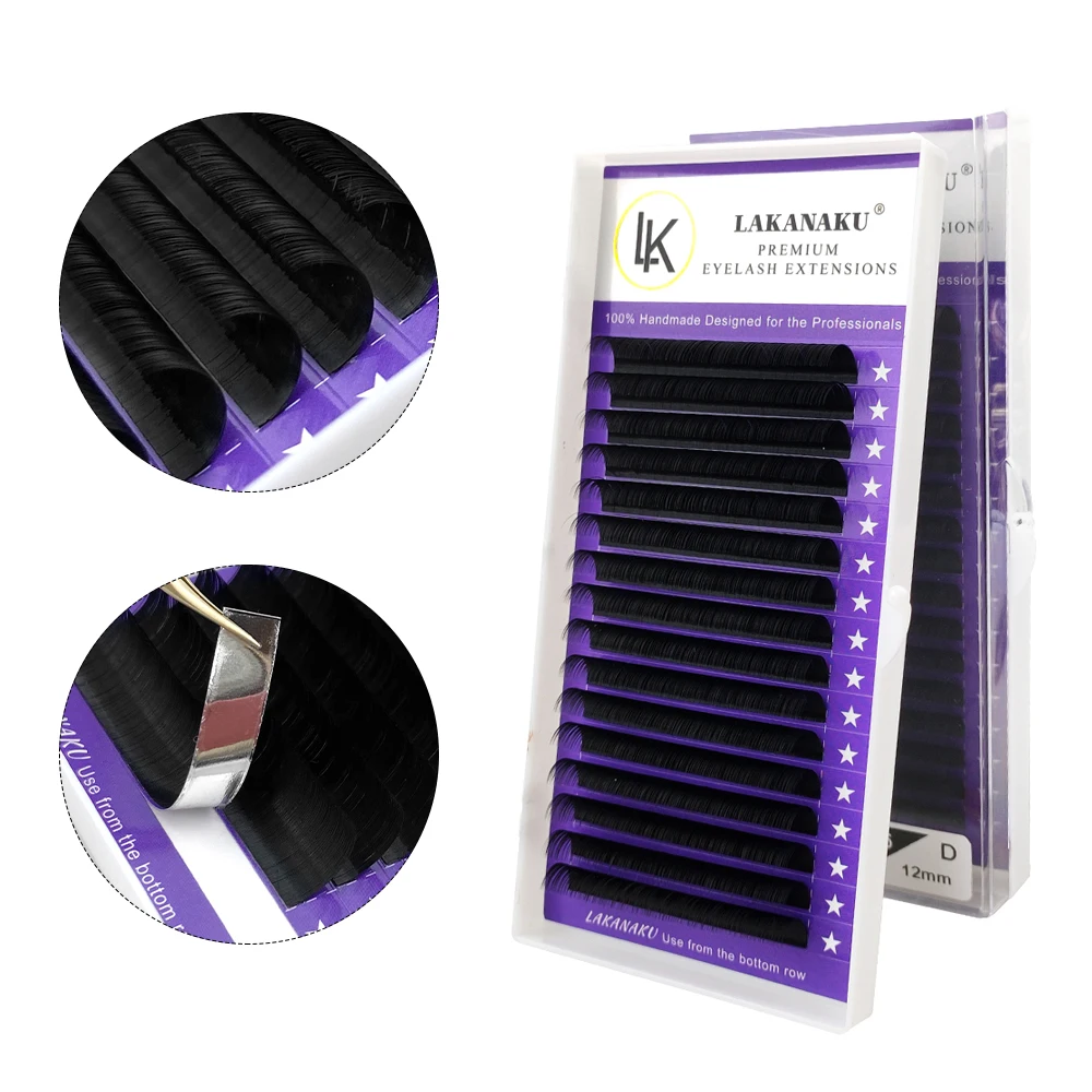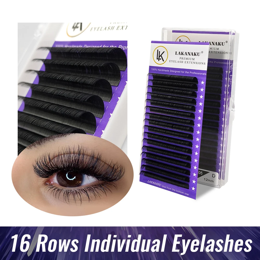 LAKANAKU 16 рядов классические Индивидуальные ресницы шелк наращивание ресниц удлинение норки Объем 8-18 мм Профессиональный макияж бровей наращивание ресниц