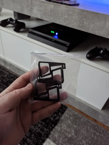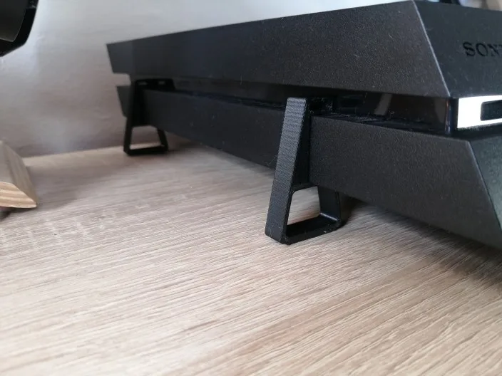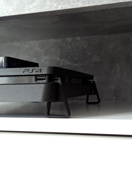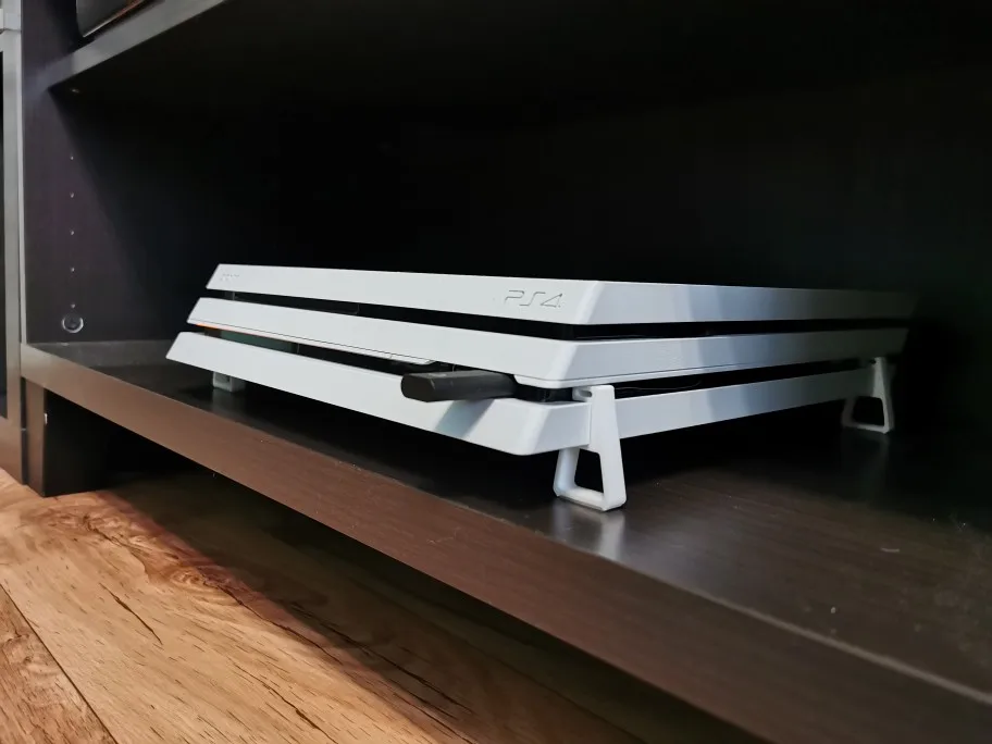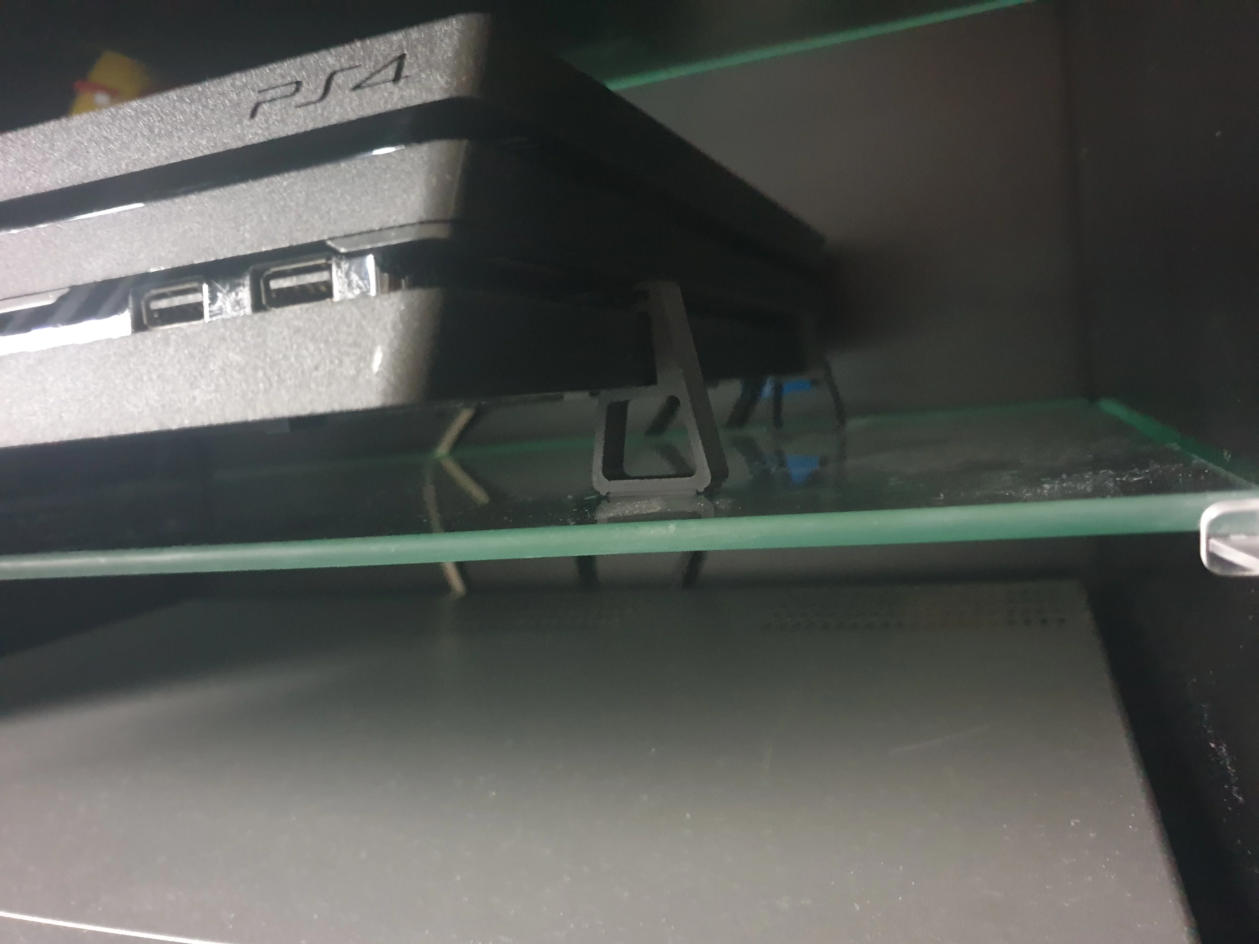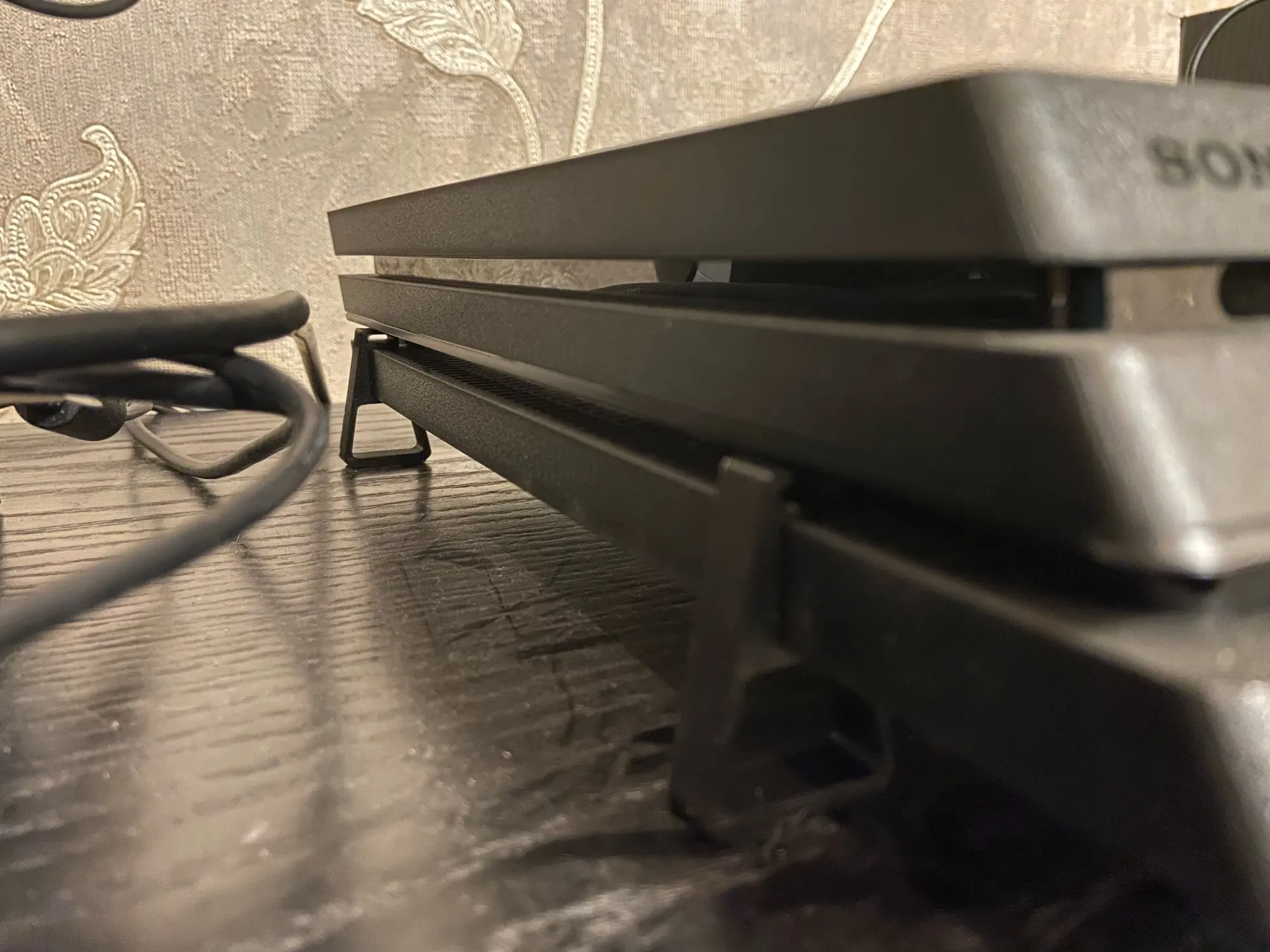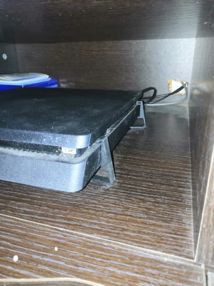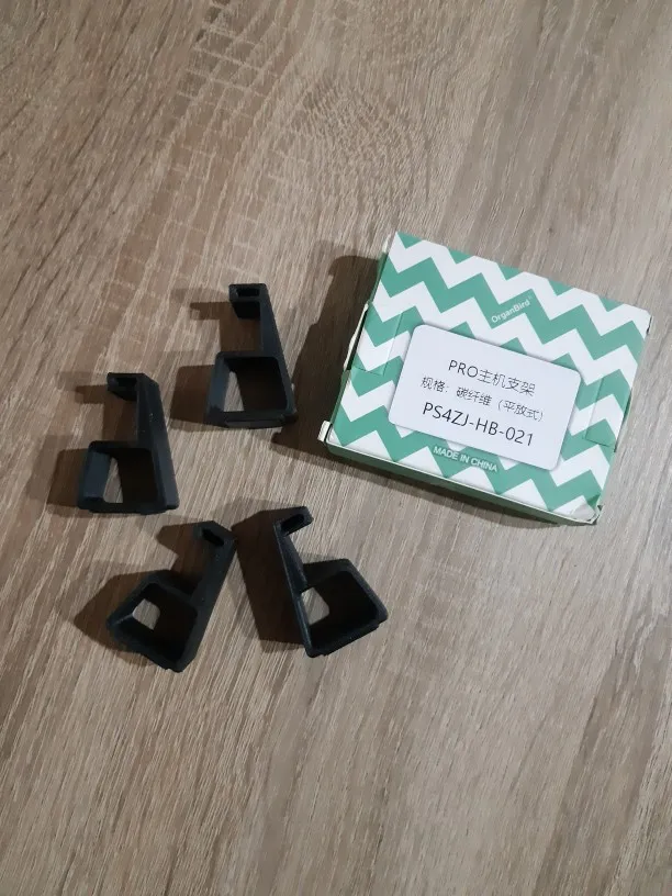 Очень хорошие держатели, есть небольшая резина, как пластик на нижней части, поэтому PS4 Pro сидит прочно на полке. Но они не прикреплены достаточно крепкими в пазы PS4 Pro, поэтому перед перемещением устройства необходимо быть немного внимательными.